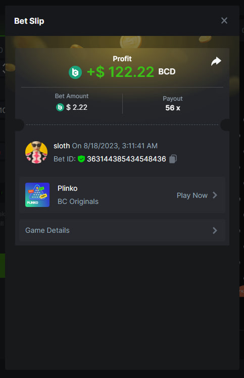 Total Points 30/30 EASY 1 https://bc.game/#/sd/11VO77GATVCCXF 2 https://bc.game/#/sd/11VO36FOYPH48V 3 https://bc.game/#/sd/11VKFQKFWOAMU7 4 https://bc.game/#/sd/11VKM1H288HRNB 5 https://bc.game/#/sd/11VKG5J0NO13JB 6 https://bc.game/#/sd/11VKLQZGL749P7 7 bet id 2388541117525266478 8 https://bc.game/#/sd/11VKH3DCZZR72Z 9 https://bc.game/#/sd/11VKHRDODKPPY3 10 Both done. MEDIUM 1 https://bc.game/#/sd/11VKEFPNPAVZIZ 2 https://bc.game/#/sd/11VKDDJO482EBN 3 https://bc.game/#/sd/11VKE9CI6RTUE7 4 bet id 2388491552407298304 5 https://bc.game/#/sd/11VJN7D9T73JFR 6 https://bc.game/#/sd/11VKERZ2NQWVER 7 * There is a problem with blackjack bet slips. all of the bets in history shows as 0 value in bet slip.blackjack hand is visible at bet slip game info ss .i also added ss of bill showing the bet with game id. bet is 2 bcd. Thank you https://bc.game/#/sd/11VOQRXMFX4X27 8 https://bc.game/#/sd/11VLQJAKYSW9P7 9 https://bc.game/#/sd/11VLS5NLHTDLWB 10 https://bc.game/#/sd/11VLWDXNBYDIRB HARD 1 https://bc.game/#/sd/11VJO4ADTOF1NJ 2 https://bc.game/#/sd/11VMPUDVWNOGCN 3 https://bc.game/#/sd/11VMKBWDTF65NF 4 https://bc.game/#/sd/11VOIUG63W4GGV 5 https://bc.game/#/sd/11VO9PCVEW7R4B 6 https://bc.game/#/sd/11VOO6VJNW78Y3 7 https://bc.game/#/sd/11VMKUB6AK9HJ7 8 https://bc.game/#/sd/11VODUXB33W0GV 9 https://bc.game/#/sd/11VOH4GG3LZ55Z 10 bet id 2385379590152524000