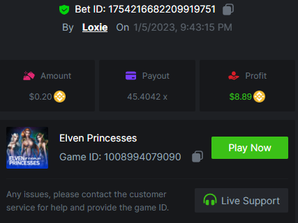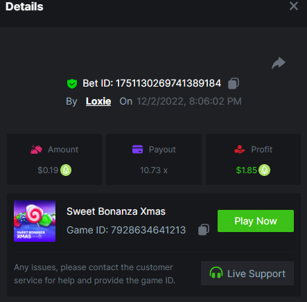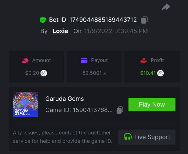 1. A millimeter off of the 500 free spins, got 5 instead. Hit 3 scatters on the first free spin but didn't give extra spins sadly. Total actual profit around $1. https://bc.game/#/sd/111UE52X1MAO7N
