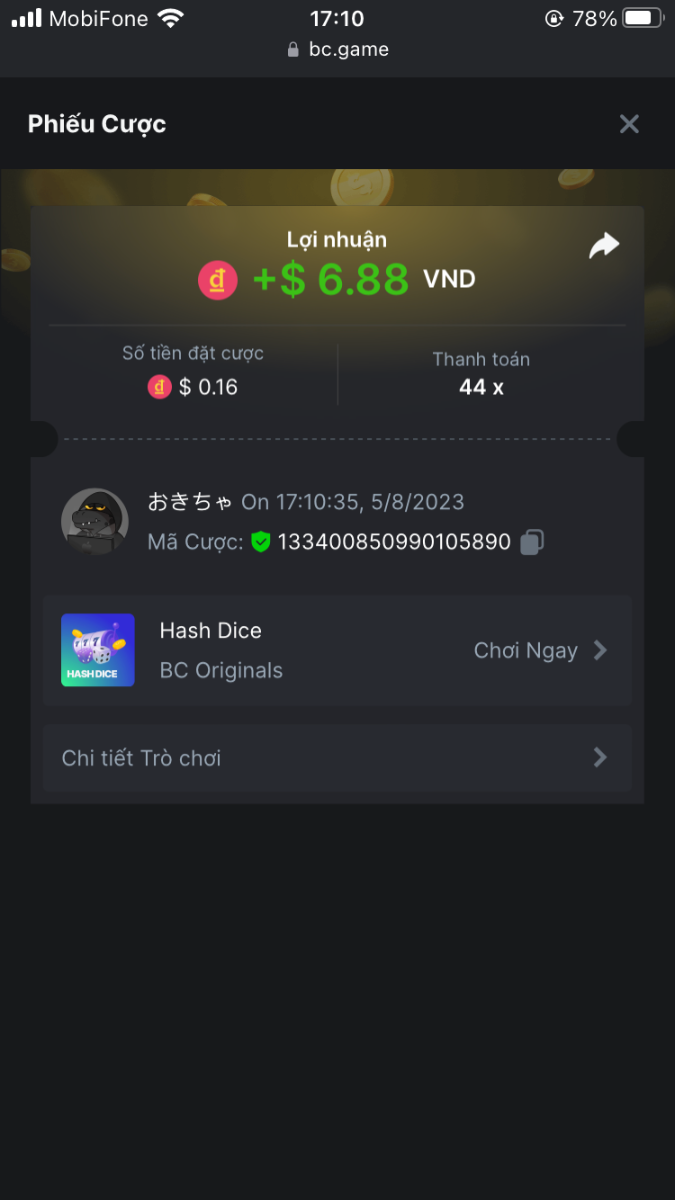 5. I've joined the forum event; Now it's your turn to win generous rewards from BC.GAME! Bet id : 2291914185115836550