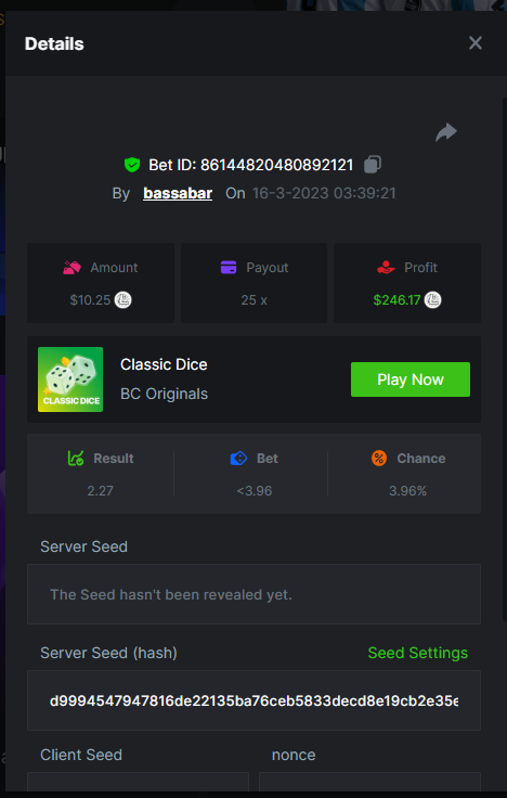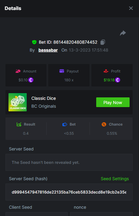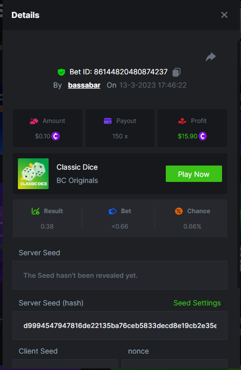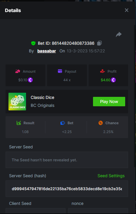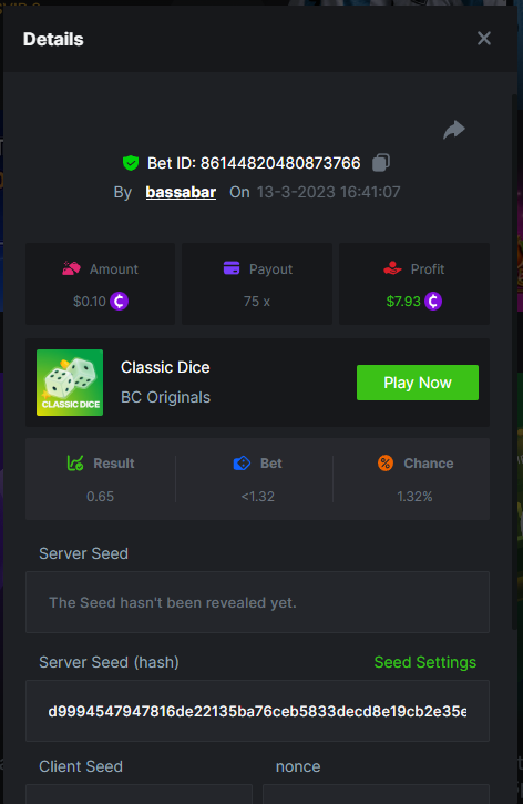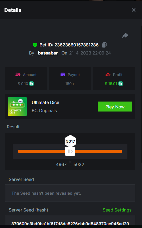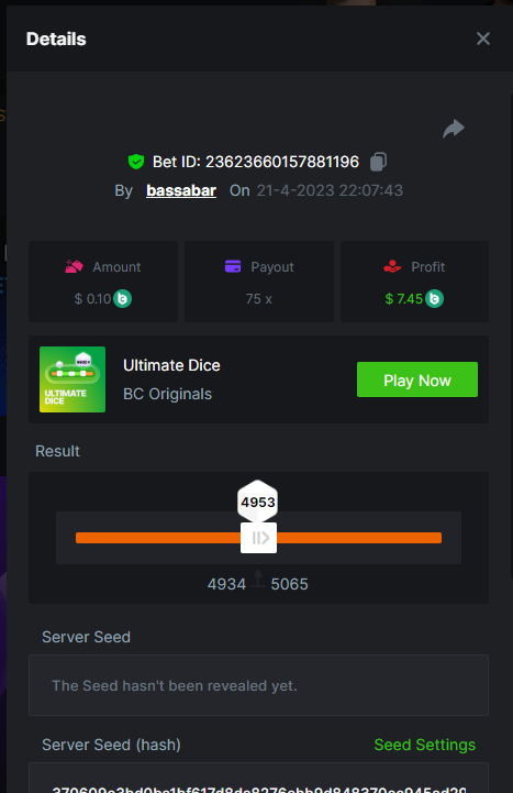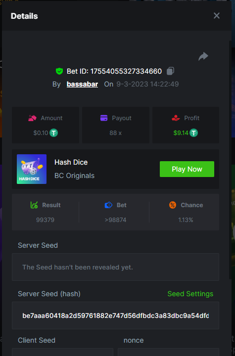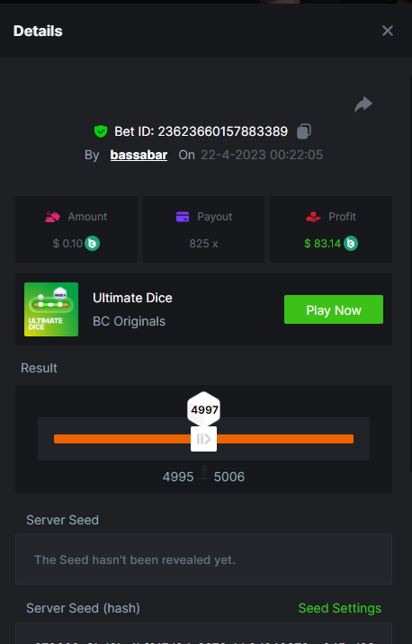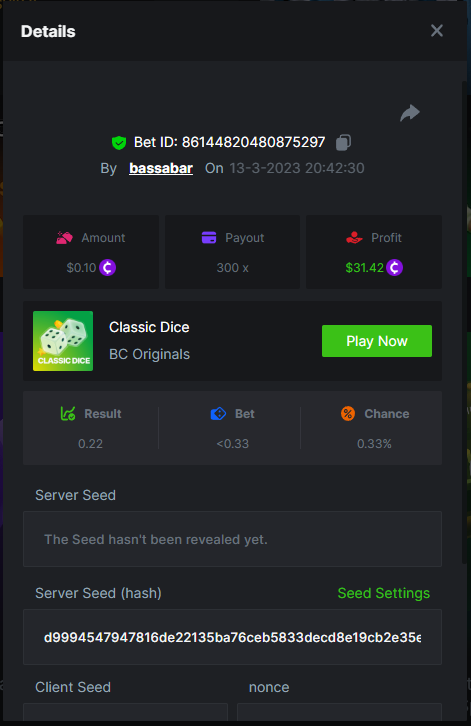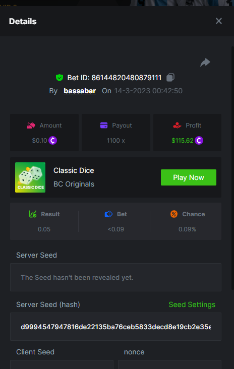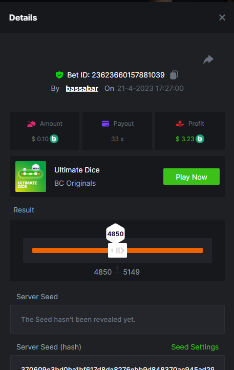 Highest multiplier: 486.213x Bounty (AAA or KKK): Yes Multiplier: 486.213x https://bc.game/#/sd/115W66QQU4A80J Bounty(KKK): https://bc.game/#/sd/115VAVB5LCGD1V -