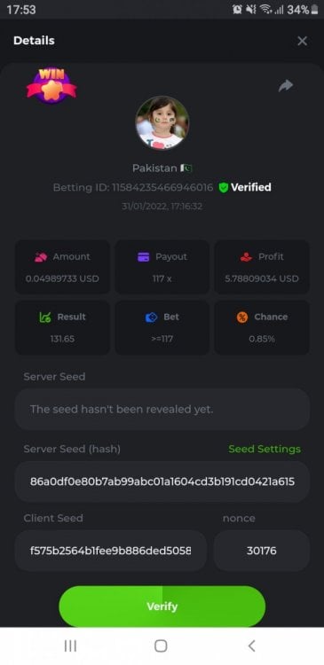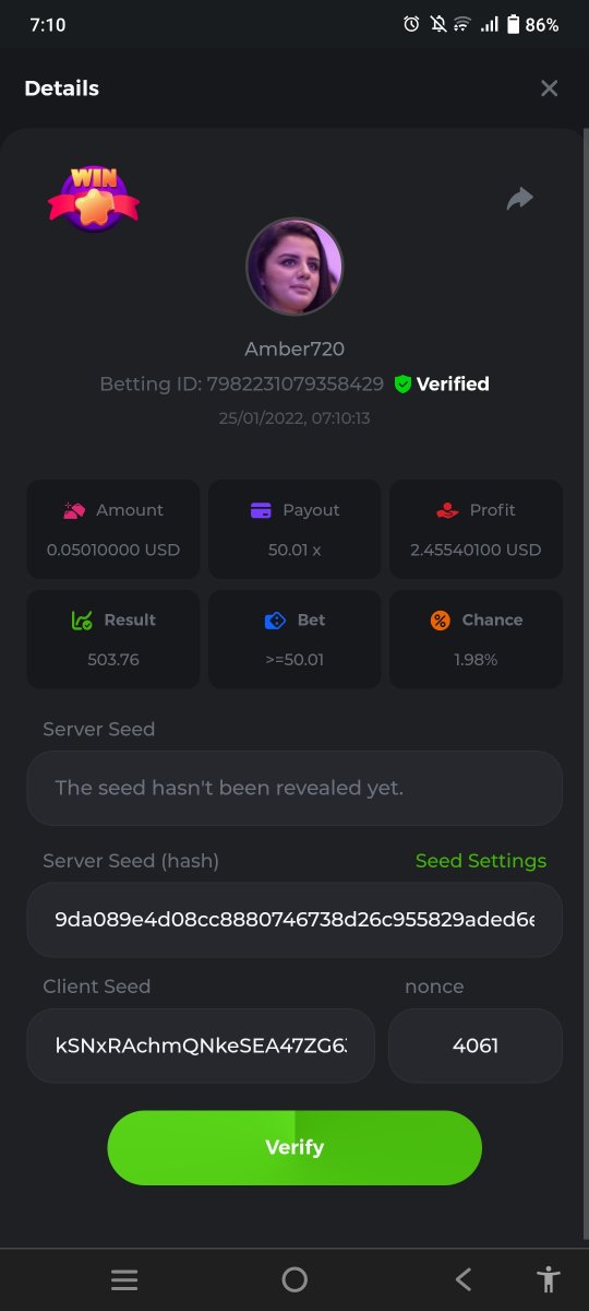 4. Game Hash Dice Result 72072 Minimum payout 100 x