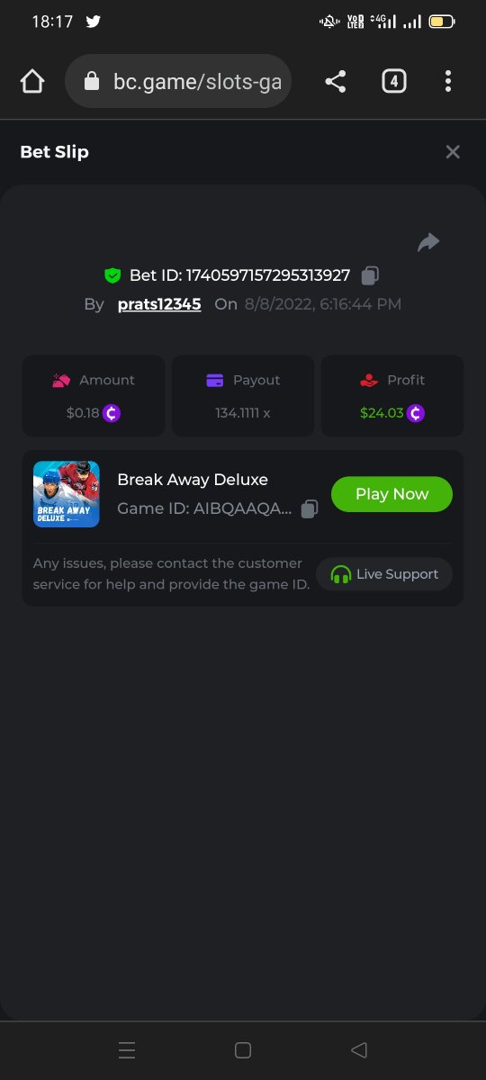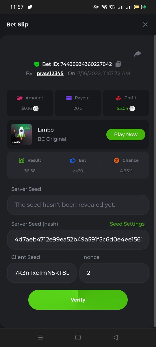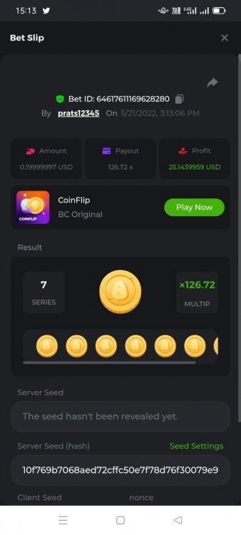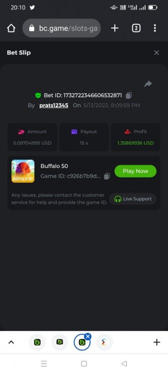 https://bc.game/sd/?sd=10KZ73TY38IHOZ Just to make it clear regarding the Bet amount which is 0.20$ posting a full screenshot of the same below: