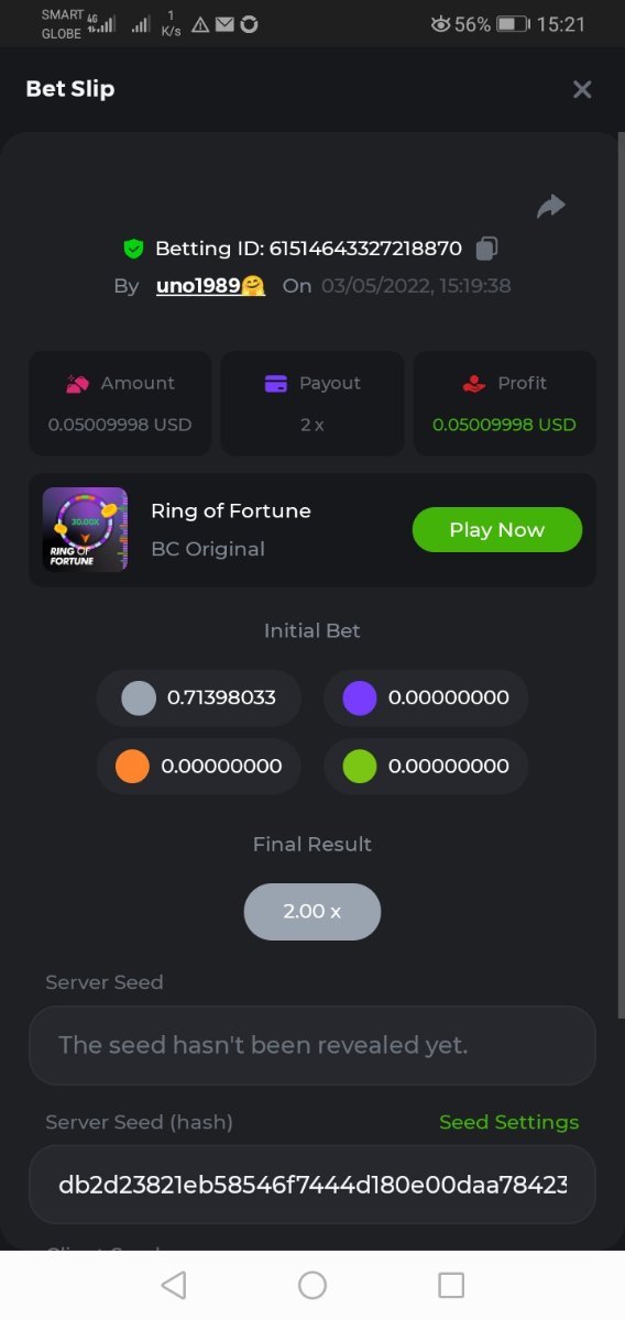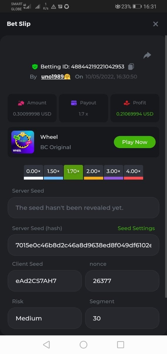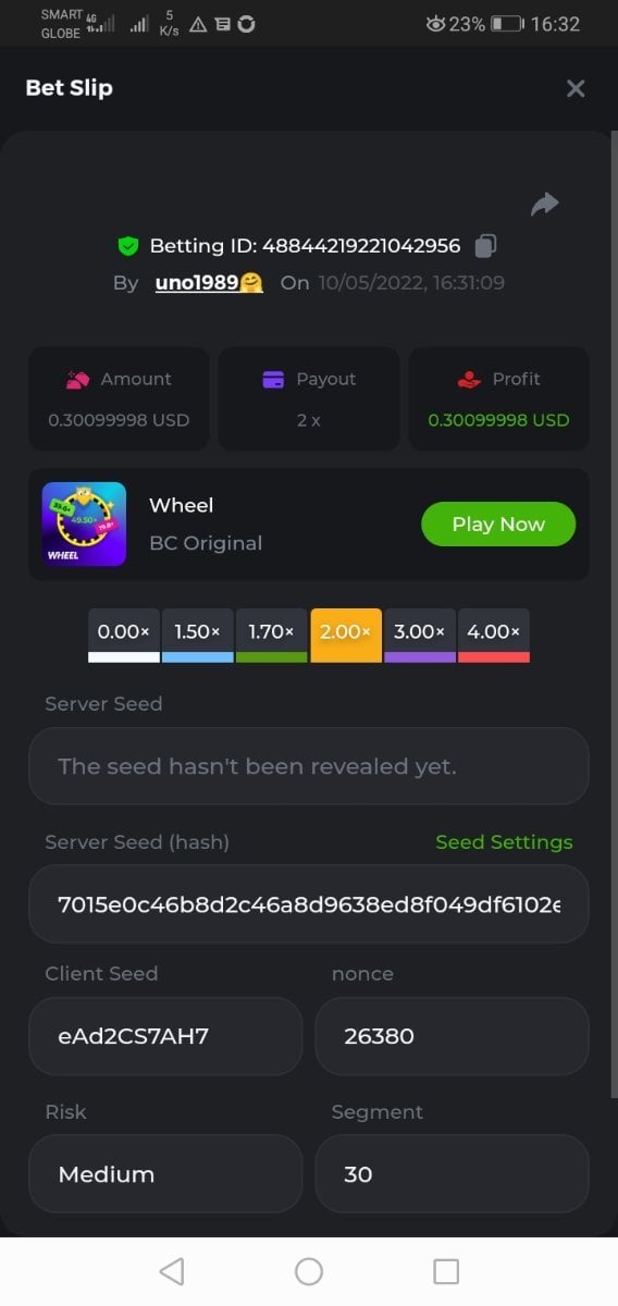 12. Follow BCGame on Instagram (screenshot & IG username required). "" "username ig" "" Uno demonyo Follow BCGame on Twitter (screenshot & twitter handle required). Twitter user @unodemonyo Follow BCGame on Facebook (screenshot & FB username required). Facebook name. Uno demonyo Win a bet in Cave of Plunder on 7.50x payout (Completing all book symbols). https://bc.game/sd/?sd=10INW650YZD5AR Win a bet by getting a natural Blackjack (A+K/Q/J/10) with only red cards in it. https://bc.game/sd/?sd=10IO6PWL3QSKYB Get a 49.50x on Wheel (50 segments, High risk). https://bc.game/sd/?sd=10IO7UYFPPH9G3 Enable 2FA for your BC.Game account (If it's already activated, keep it activated during event week).