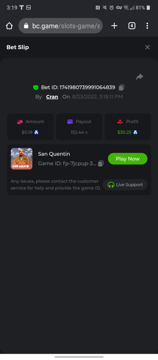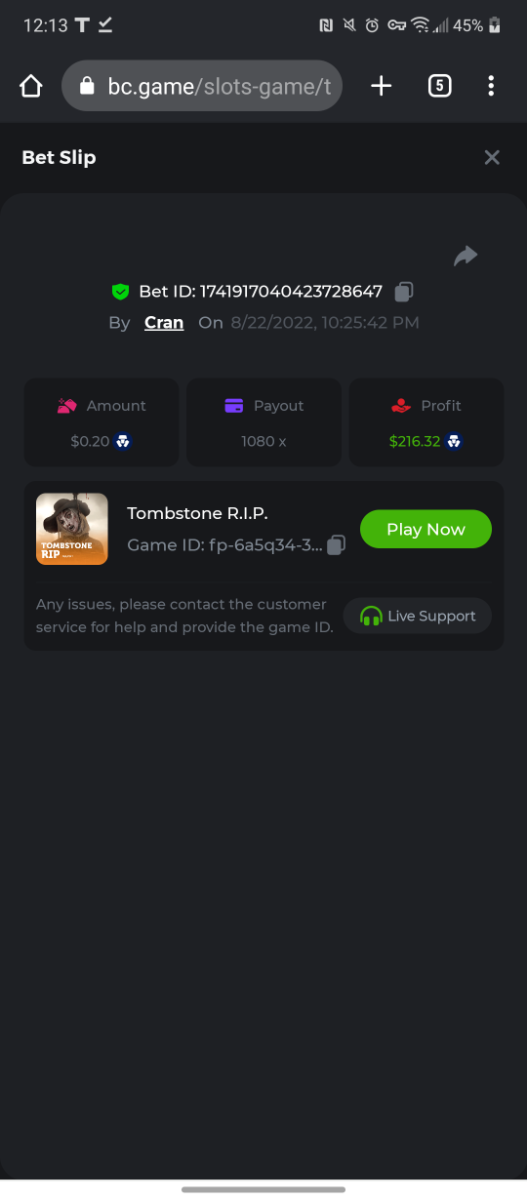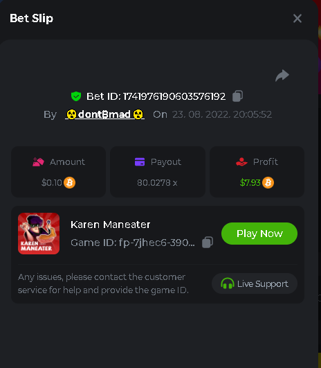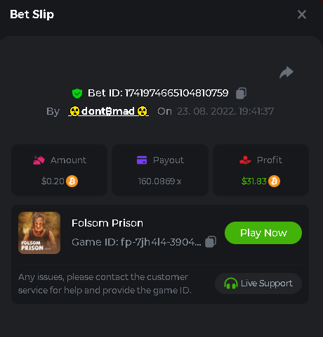2smart Posted August 22, 2022 Share Posted August 22, 2022 (edited) MENTAL - 360.2322 https://bc.game/sd/?sd=10RF3HYCR8C7PV SAN QUENTIN - 320.5711 https://bc.game/sd/?sd=10RGINMSWEWAAB FOLSOM PRISON - 160.0869 https://bc.game/sd/?sd=10RGY0SPARCBV7 KAREN MANEATER - 80.0278 https://bc.game/sd/?sd=10RGZIWF1U7DOZ BOUNTY - 50.6179 https://bc.game/sd/?sd=10RF9JPR866MMR TOMBSTONE R.I.P. - 2103.5689 https://bc.game/sd/?sd=10RHNBV52C6J9V FIRE IN THE HOLE - 413.2132 https://bc.game/sd/?sd=10RIWTI1WJY68J Edited August 24, 2022 by 2smart 1 Link to comment Share on other sites More sharing options...