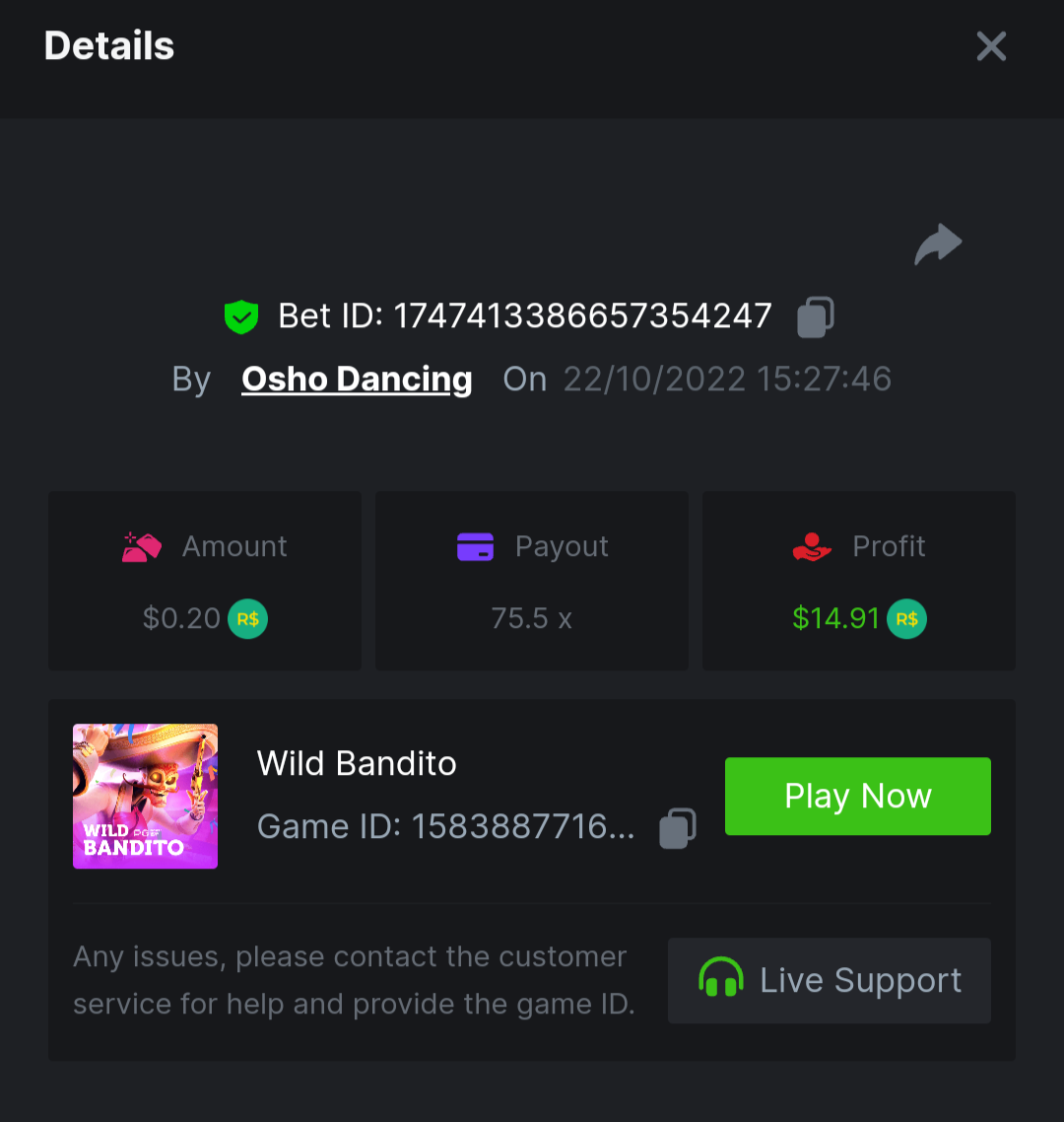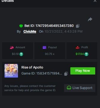 Event Team Niobium Posted October 19, 2022 Event Team Share Posted October 19, 2022 (edited) Starts: 19, October 2:30pm GMTEnds: 26, October 2:30pm GMT Hey VIPs! We're pleased to be back in PG Soft to host our Top Tier battle. This week your challenge is to accomplish the highest multiplier in eight selected games. The prize pool of up to $4,000 will be split between the winners, and to make it even more exciting, any participant who completes the extra bounty will receive an equal share of 10% of the prize pool. The battle will run from October 19 at 2:30 PM GMT until October 26 at 2:30 PM GMT. Be the pilot of your stories and fly as high as you can. – (details further down). Eligible Games Win the highest multiplier on the PG Soft games listed below Mr. Hallow-Win Vampire's Charm Cocktail Nights Wild Bandito Rise of Apollo Battleground Royale Dreams Of Macau Buffalo Win The highest multiplier reached in each game will be added together and counted as total points. Bonus buys are allowed. If the player submits multiple winning entries for the same game, the entry with the highest multiplier will be valid. Minimum VIP Tier Must be VIP04 or higher in order to enter this event. Minimum Payout Minimum payout to qualify is 10x (in any game) for a valid entry. Minimum Bet Size Mr. Hallow-Win - $0.30 Vampire's Charm - $0.20 Cocktail Nights - $0.20 Wild Bandito - $0.20 Rise of Apollo - $0.20 Battleground Royale - $0.20 Dreams Of Macau - $0.20 Buffalo Win - $0.20 Eligible Coins All cryptocurrencies are eligible (excepting JB, and BCL). Free Play Mode is not valid for this event. Prize Pool & Reward Breakdown The winners will win a share of the prize pool based on the detailed ranking below. Anyone who completes the side bounty will receive a share of a 10% of the prize pool. BOUNTY - Share a bet that shows exactly 50x payout on any of the ten games within the timeframe of this event and you will receive a share of 10% of the prize pool! If nobody wins exactly the payout, the player/s closest to the payout will win this bounty! Original rules apply with a minimum bet, minimum payout & VIP. How to Enter Access the game to select your Bet ID, click on the Share icon (↷) and then Copy link. Return to the topic, paste the link in the field "Reply to this topic..." E.g.: https://bc.game/#/sd/10VD2L3WKXL98Z Each eligible entry must have the Bet Slip URL, the non-inclusion of the link will disqualify participation in the event. In the same post, upload a screenshot of your win by clicking the game ID WITH VIEW IN USD mode ENABLED (accessible at the bottom of dropdown menu for your wallet up top, and Submit Reply. Done! This way, we can ensure that your bet indeed met the minimum requirement at the time of placing it: Example post - Link: https://bc.game/#/sd/10VD2L3WKXL98Z Good luck everyone! Edited October 19, 2022 by Niobium 4 Link to comment Share on other sites More sharing options...