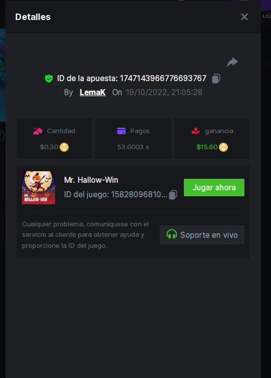 2smart Posted October 20, 2022 Share Posted October 20, 2022 (edited) Mr. Hallow-Win - 79.2x https://bc.game/#/sd/10VEQ327CPM8SZ Vampire's Charm - 101.5x https://bc.game/#/sd/10VERQGEB6CO43 Cocktail Nights - 281.2x https://bc.game/#/sd/10VEVNAH6UC9W3 Edited October 20, 2022 by 2smart Link to comment Share on other sites More sharing options...