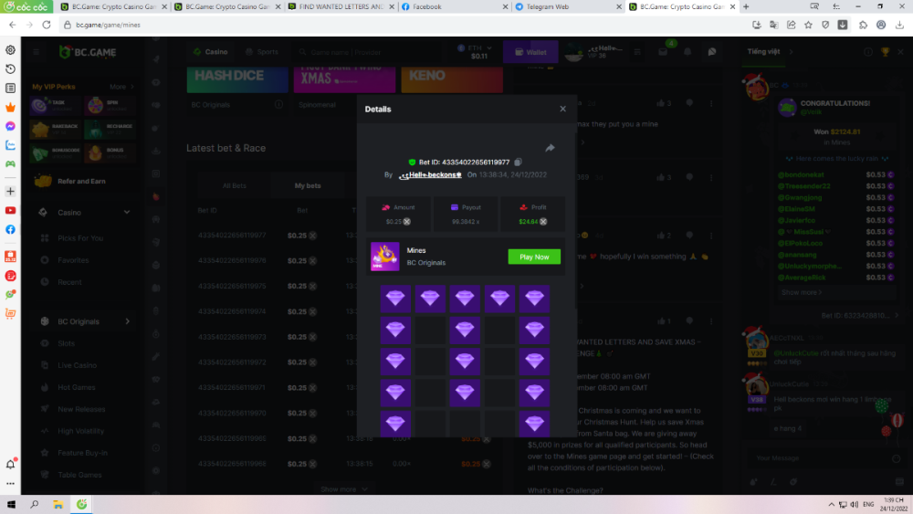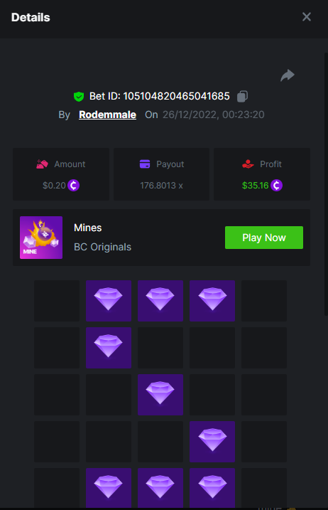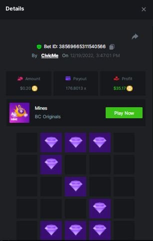 BCGame_Ewa Posted December 16, 2022 Share Posted December 16, 2022 $5,000 FIND WANTED LETTERS AND SAVE XMAS – MINES CHALLENGE Starts: 19, December 08:00 am GMTEnds: 26, December 08:00 am GMT Hey Everyone! Christmas is coming and we want to invite you to our Christmas Hunt. Help us save Xmas and take gifts from Santa bag. We are giving away $5,000 in prizes for all qualified participants. So head over to the Mines game page and get started! – (Check all the conditions of participation below). What's the Challenge? Find all letters from word ‚XMAS’ on Mines game using below mentioned settings: for ‘X’ - 9 diamonds 8 mines, payout 83.1985x for ‘M’ - 16 diamonds 4 mines, payout 99.3842x for ‘A’ - 12 diamonds 6 mines, payout 102.1699x for ‘S’ - 9 diamonds 9 mines, payout 176.8013xOnly players who post all 4 bets with exact the same settings as on below screenshots will win prizes. How to Enter To enter, copy the link of the bet you'd like to submit. Once you've copied it, paste it as a reply to this thread like so: Link: https://bc.game/#/sd/10YWJXCLX823GZ In the same post, upload a screenshot of your win by clicking the game ID WITH VIEW IN USD mode ENABLED (accessible at the bottom of dropdown menu for your wallet up top. This way, we can ensure that your bet indeed met the minimum requirement at the time of placing it: Link: https://bc.game/#/sd/10YWJXCLX823GZ Link: https://bc.game/#/sd/10YWK6WJG1YFBN Link: https://bc.game/#/sd/10YWLNKDX4QIVN Link: https://bc.game/#/sd/10YWMF6CJCR95F Minimum VIP Minimum VIP 4 Minimum Payouts Need to find all 4 letters with mentioned payouts for each. Minimum Bet Size $0.2 USD equivalent Eligible Coins All cryptocurrencies are eligible (excepting JB) Prize pool & Reward Breakdown Each particpant who find correcly all 4 letters from word 'XMAS' will receive EQUAL reward from prize pool as below: Please combine all of your hits together in a SINGLE post. Edit your existing post for additional hits, don't create a new post. Each eligible entry must have the Bet Slip URL, failure to include it will disqualify participation in the event. Bet Slip image is not mandatory. Bets must be posted within 24 hours of placing bet in order to keep things fair for everyone. Bets must be made during the specified time window stated above. This thread will lock automatically when the time period is over. One (1) entry per household. Anyone found attempting to win multiple prizes will be disqualified from this challenge as well as all future challenges. Failure to follow instructions will result in your submission being null and void. By entering this challenge, you acknowledge that BC.Game has the final decision on results and placement. Payouts will be distributed after the event is finished. Please note that it could take up to 48 hours after the completion of the event. Good luck everyone! Merry Christmas! 3 Link to comment Share on other sites More sharing options...