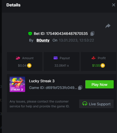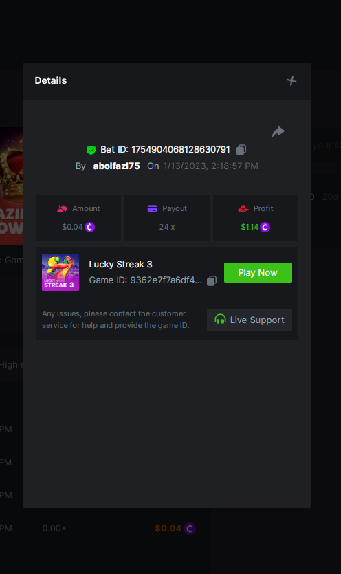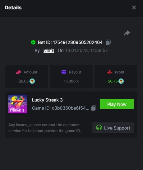 • In the same post, upload a screenshot of your win by clicking the game ID WITH VIEW IN USD mode ENABLED (accessible at the bottom of dropdown menu for your wallet up top, and Submit Reply. Done! This way, we can ensure that your bet indeed met the minimum requirement at the time of placing it: