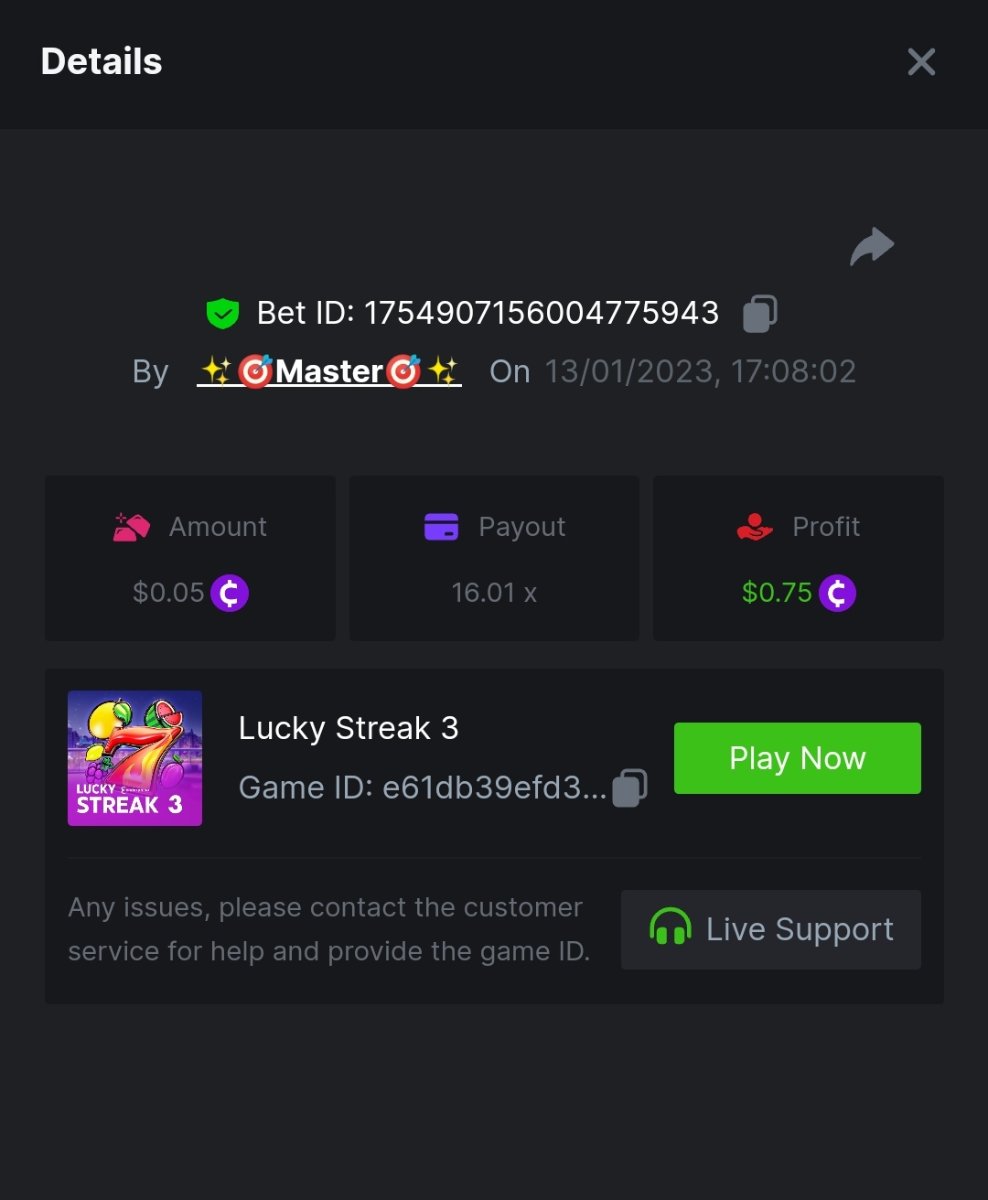 • If the player submits multiple winning entries for the same game, the entry with the highest multiplier will be valid.