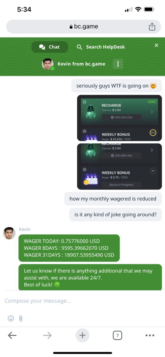 Deep4788 Posted March 31, 2023 Share Posted March 31, 2023 Bc games and support totally sucks if anyone or bc games official’s not agreed with then just check the screenshots I added in this post. My weekly bonus on account showing $41k and support said $9556 only Also few hours ago in my account monthly bonus showing $42k+ and now it showing $10k Link to comment Share on other sites More sharing options...