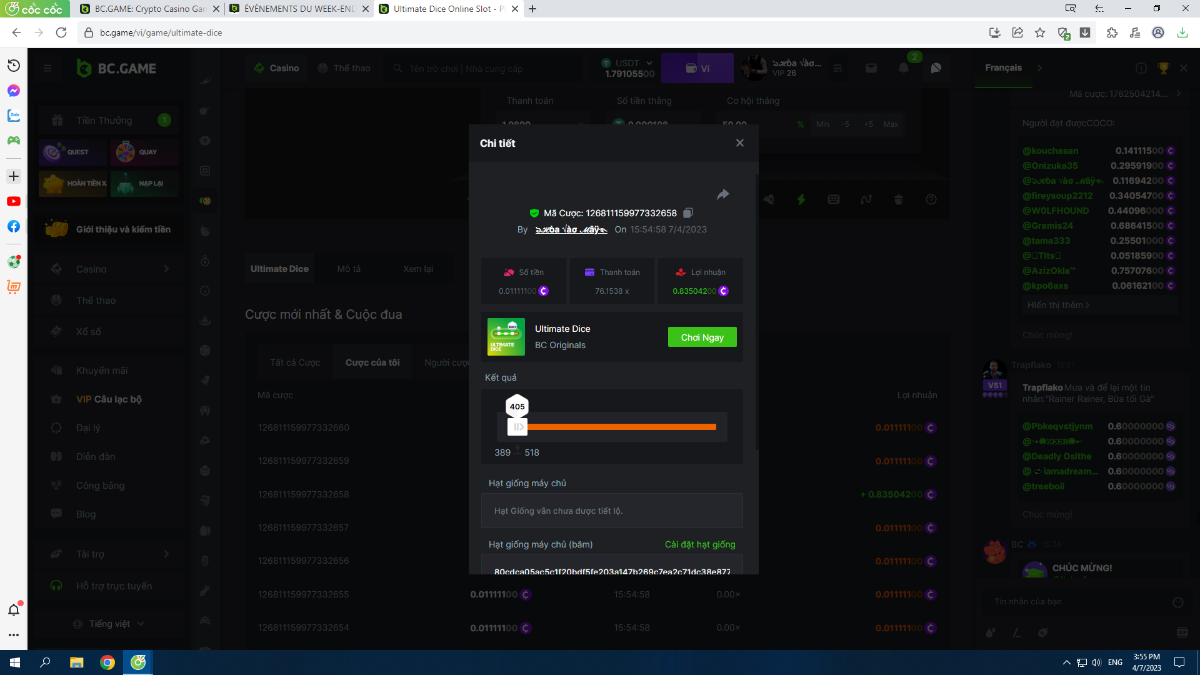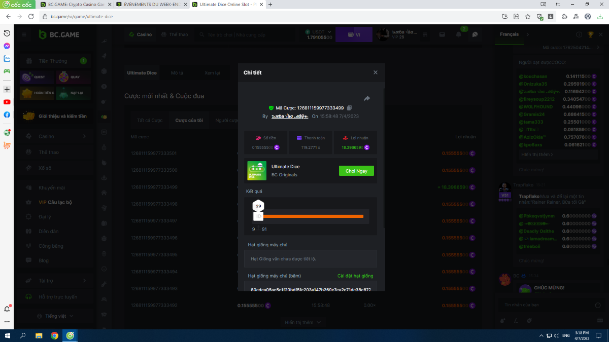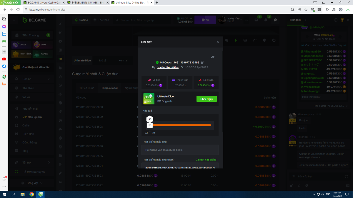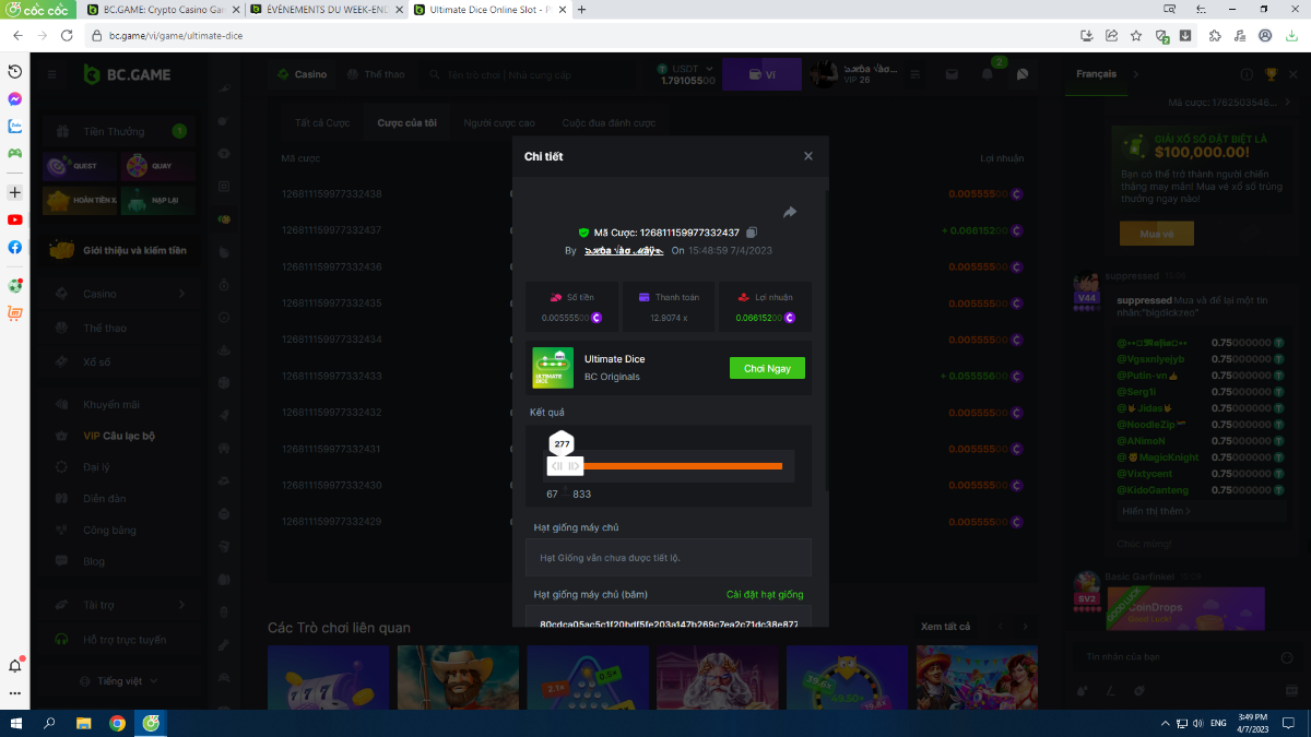 Complétez autant des 17 paiements suivants sur BC original👍 ULTIMATE DICE (https://bc.game/fr/game/ultimate-dice)👍. Doit être un multiplicateur exact ou très proche.