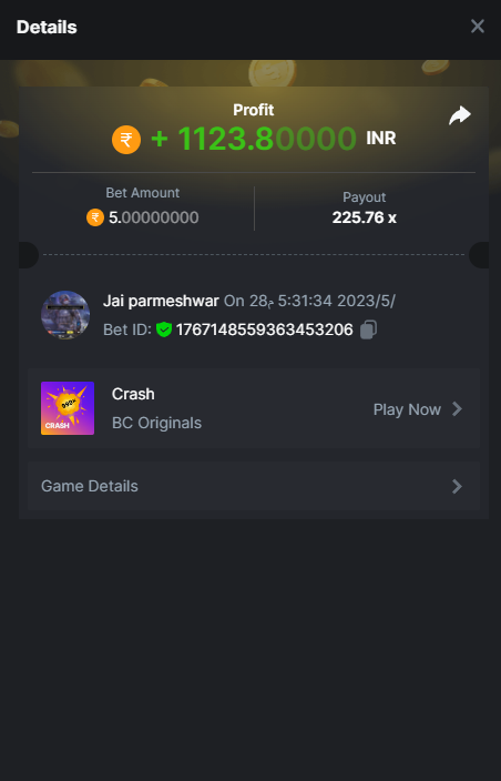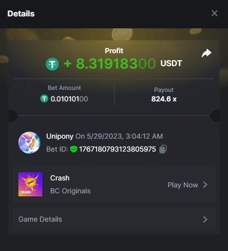 Maksypro Posted May 28, 2023 Share Posted May 28, 2023 Read Carefully Before Start To Hunt Daily Challenges #249 CRASH Hunt : Win the highest pay out Min Payout requirement 80x Min Level 4 ๏ธDuration Starting : Now End time : 23.59 UTC Time How to Join? Make screenshot + paste your bet link + UID or Profile link Any coin, with min bet 0.01 USD is allowed (jb/bb/bcl not allowed) Reward Prizes 1st Place.....$7 BCD 2nd Place.....$5 BCD 3rd Place.....$4 BCD 4th Place.....$3 BCD 5th Place.....$2 BCD ๐ต Winners will be announcing next day after Roll Point! 2 Link to comment Share on other sites More sharing options...