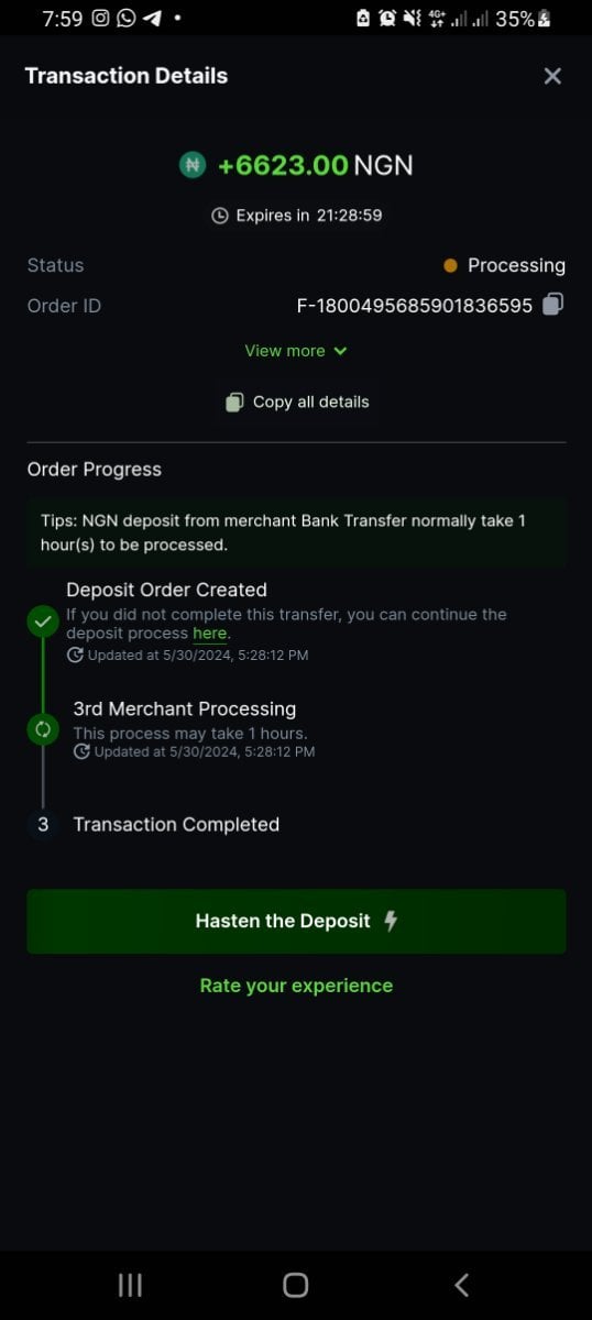 Puyefbkonpyb Posted December 18, 2023 Share Posted December 18, 2023 I made a deposit into my BCgame account using the provided merchant bank details provided to me and I'm yet to see it reflect on my account over 7 hours after. Kindly resolve this quickly see Link to comment Share on other sites More sharing options...