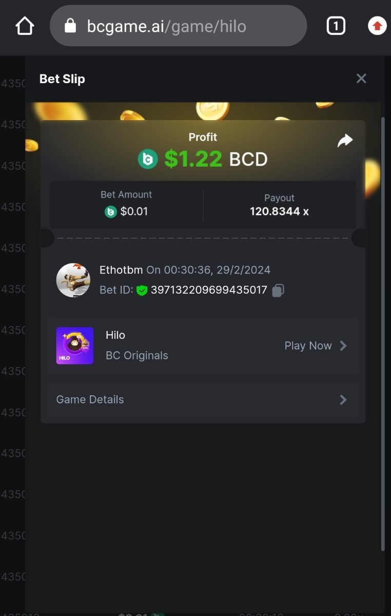 Moderator Giandreas Posted February 28, 2024 Moderator Share Posted February 28, 2024 Read Carefully Before Start To Hunt Forum Daily Challenges #524Hunt : HiLo Win the highest pay out Min Payout : 20x Min Level 10️Duration Starting : Now End time : 23.59 UTC Time How to Join? Make screenshot + paste your bet link + UID or Profile link Any coin, with min bet 0.01 USD is allowed (jb/bb/bcl not allowed)Reward Prizes 1st Place.....$7 BCD 2nd Place.....$5 BCD 3rd Place.....$4 BCD 4th Place.....$3 BCD 5th Place.....$2 BCD 🏵 Winners will be announcing next day after Roll Point! Link to comment Share on other sites More sharing options...