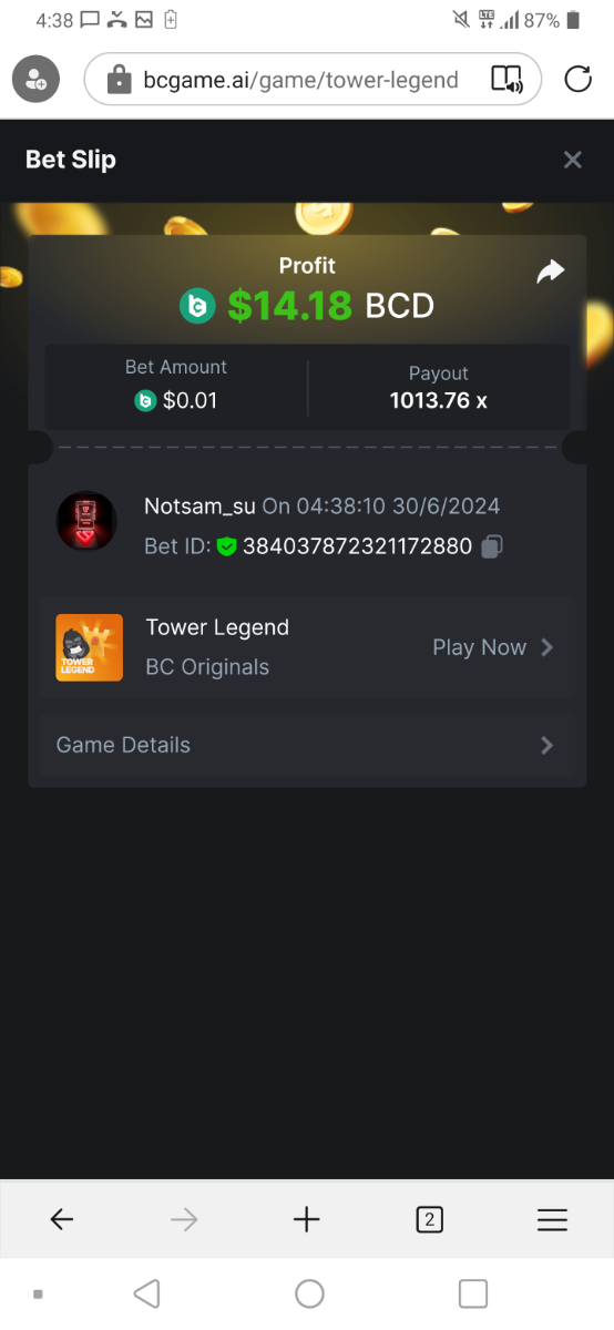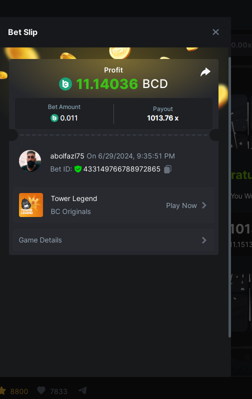 Moderator Giandreas Posted June 29, 2024 Moderator Share Posted June 29, 2024 Read Carefully Before Start To Hunt Forum Daily Challenges #646Hunt : Tower Legend Win the highest pay out Min Payout : x38 Min Level 10 ️Duration Starting : Now End time : 23.59 UTC Time How to Join? Make screenshot + paste your bet link + UID or Profile link Any coin, with min bet 0.01 USD is allowed (jb/bb/bcl not allowed) Reward Prizes 1st Place.....$7 BCD 2nd Place.....$5 BCD 3rd Place.....$4 BCD 4th Place.....$3 BCD 5th Place.....$2 BCD 🏵 Winners will be announcing next day after Roll Point! Link to comment Share on other sites More sharing options...