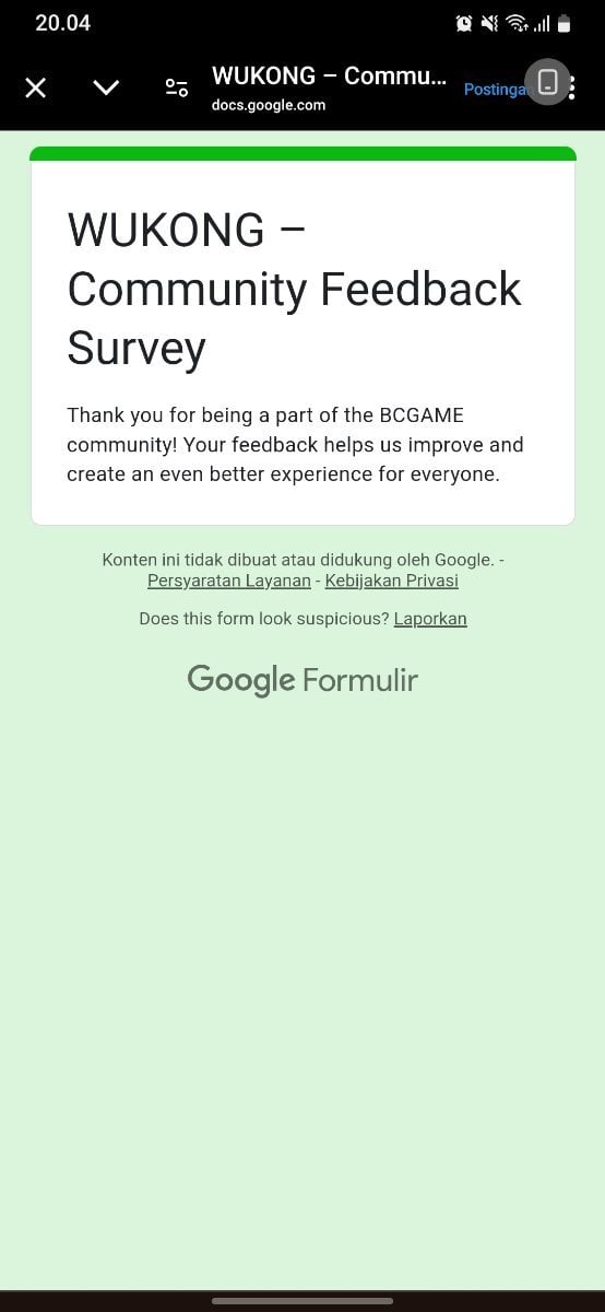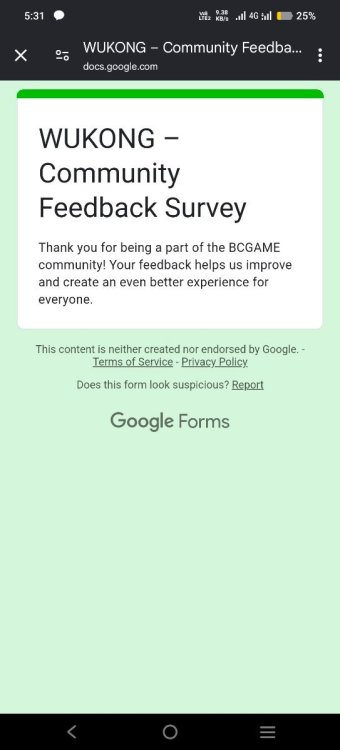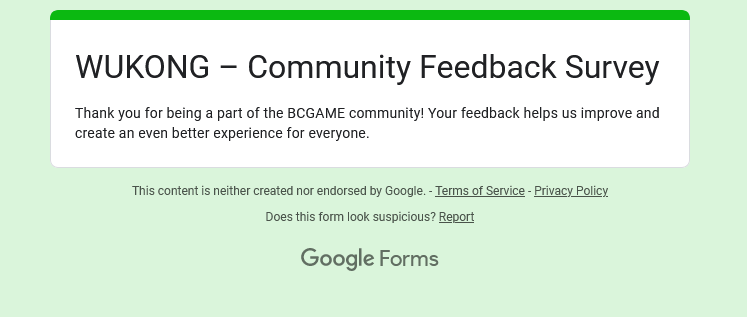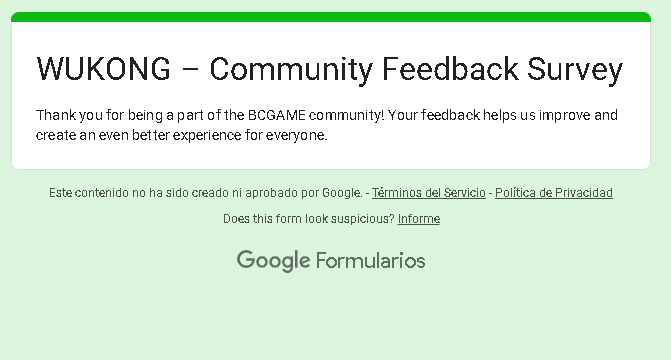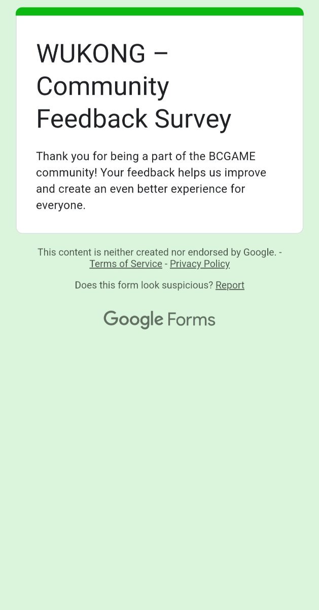Event Team BCGame_Maxim Posted February 20, 2025 Event Team Share Posted February 20, 2025 WUKONG Community Survey Giveaway!Share Your Feedback & Win! End date: 1st March, 2025 Hey BC.GAME Fam! WUKONG has been out for a few months now, and we want YOUR thoughts! Whether itβs the gameplay, mechanics, or overall experience, your feedback helps us improve it! How to Participate: Complete the WUKONG Feedback Survey Reply to this post with your WUKONG experience! Get a chance to win exclusive surprise rewards! 20 lucky winners will score mystery prizes! Donβt miss out! Fill out the feedback form now: https://forms.gle/iu5yLBY19a48timE8 Winners will be announced on the forum after the giveaway ends. Stay tuned & good luck! 6 Link to comment Share on other sites More sharing options...