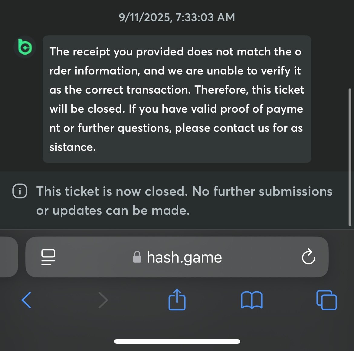 Ticket closed without solving