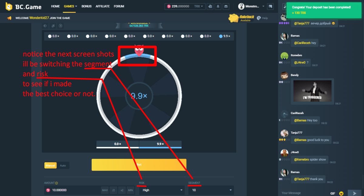 Monstrous Eberto Posted July 26, 2020 Share Posted July 26, 2020 so i tried explaining this in the screenshots. but didn't get to as well as i planned. but here's what i'm learning about this game. i started off playing this game on low risk and now i play it only on high risk. why? because i'm now only having to guess how deep into the segment is it going to stop when i hit my win. this changes the need to raise your bet to catch profit. instead i just change the segment to a higher number if i want a higher payout. and a lower segment if i sense its going to stop before the segment i'm currently betting for. After a win or two i'll go back to minimum bet to race through the expected loss streaks and when i sense if its going to hit i'll raise my bet and then i'll contemplate if it will be a shallow 10 (stopping in the first half of the blue) or a deeper 10 (stopping past half way into the blue) if i decide its going to stop deeper, i will change to a higher segment. Another way i was playing earlier was betting on 10 till it won the raising my segment till i hit all of them. however i was able to hit 50 when betting a 40 segment and when i raised to 50 after it went to where i wopuld have won a 40 segment. so this is why i am pointing this new strategy out. hope it helps. The segment at high risk stays the same slice of pizza. just gets smaller of course. terrible at jokes but seeing one anyways; its like opposite of what we're taught, that the more you invite to the party, the more slices of pizza you'll need. well at bc.game you want the smaller slices. because they are magically bigger and fill you better than the big ones. big slice = 9.9x v.s. smallest slices = 49.5x... La^.^e/ I Know or so long as you keep your eye on you're slice you'll be satisfied. or be fat to be safe. or lol. anyone who can make this joke a joke that makes me literally laugh out loud, i'll tip you in game anyways, as i said in the third screenshot, i'll post more of what i'm trying to explain. they will be separate comments to this post that are in groups of 2 to 5 pictures depending which segment hits or would have hit. simply take note of the red arrows as i'm sure you'll understand what i'm seeing too. and then come to my pizza party. i have one pizza. and i want only one slice. who else is coming? share your wins if you're using this strategy. lets call it the Wheel Pizza Strategy. we'll pizza strategy. real piece of strat. ay G? Link to comment Share on other sites More sharing options...