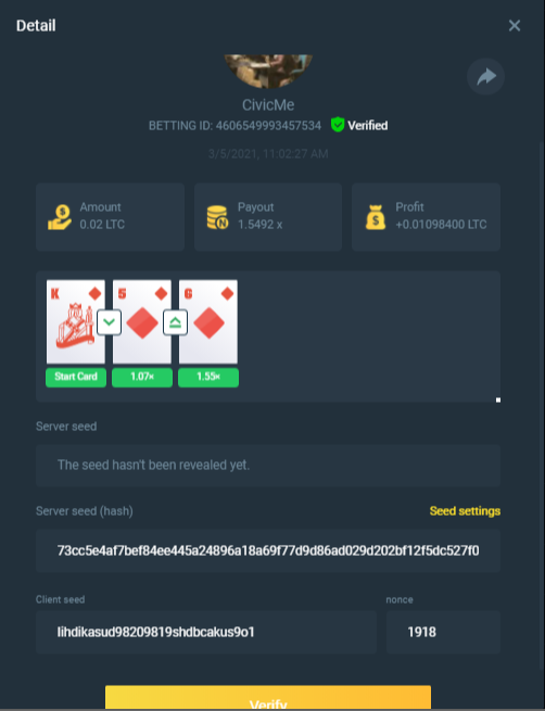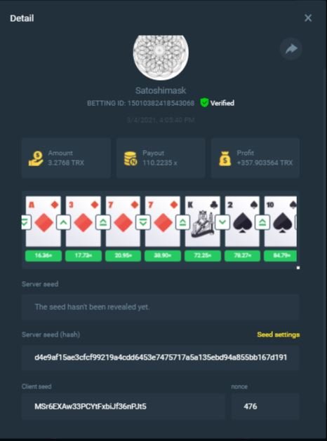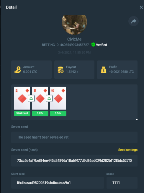 3. Full screenshot of your bets need to be submitted, (bet id, server hash, client seed and nonce) need to be visible.