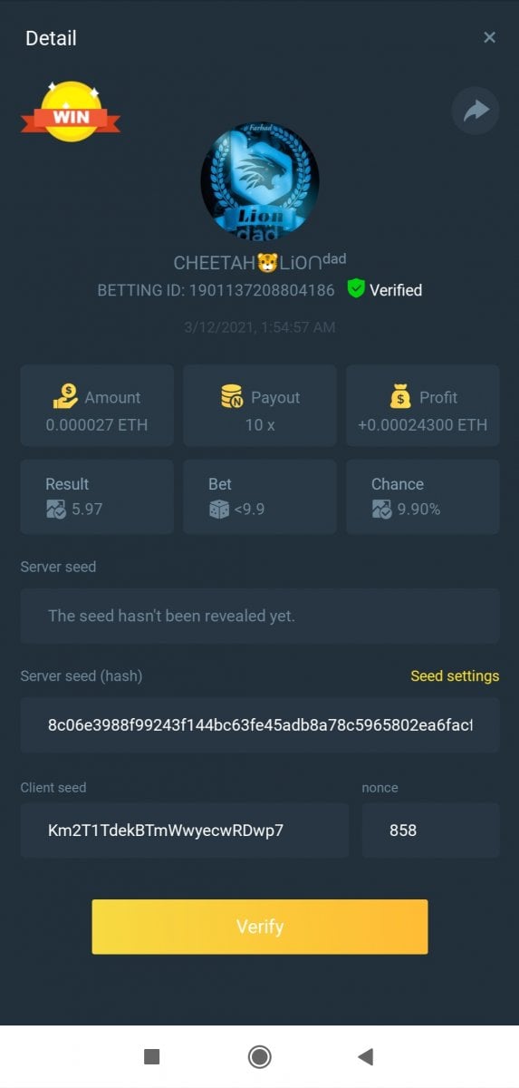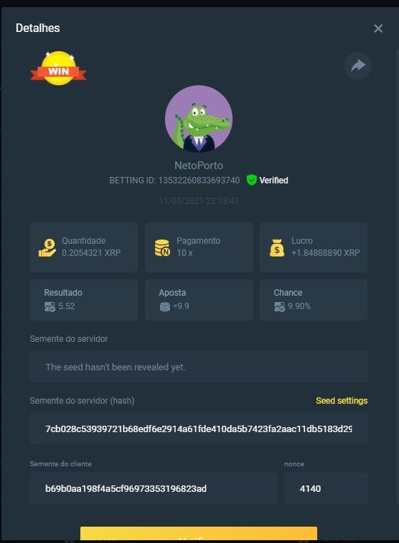 MARY.BC.GAME🇵🇠Posted March 11, 2021 Share Posted March 11, 2021 On 3/10/2021 at 9:37 PM, BC_Panda said:  Starts: 14:00, March 10th GMT Ends: 14:00, March 12th GMT  We’re excited to announce that we have three new coins available now at BC.Game !! And enjoy it more we are hosting 2 days contest where we will be giving 3 lucky winners $150 worth of new coins! Read on below to find out how you can win!  What's the Challenge? Win 2 or more consecutive bets with 10x (win chance 9.9%) on Classic Dice.  Minimum Bet Amount $0.05 equivalent  Eligible Coins All Coins are eligible as long as they match the minimum bet amount  Available Prizes 3 Winners will win $50 worth of BNB/TWT/CAKE each!  How to Enter the Challenge Take a screenshot displaying the bet details and send a reply to this thread with it. Must be able to see betting ID so that your bet can be verified. Please do not make multiple posts, just edit your original one if you need to add a new payout or replace a payout with a better qualifying amount. Nonce of all bets has to be consecutive   Disclaimer: Multiple accounts not allowed Fake screenshots will be checked and deleted        PEACE & LOVE Link to comment Share on other sites More sharing options...