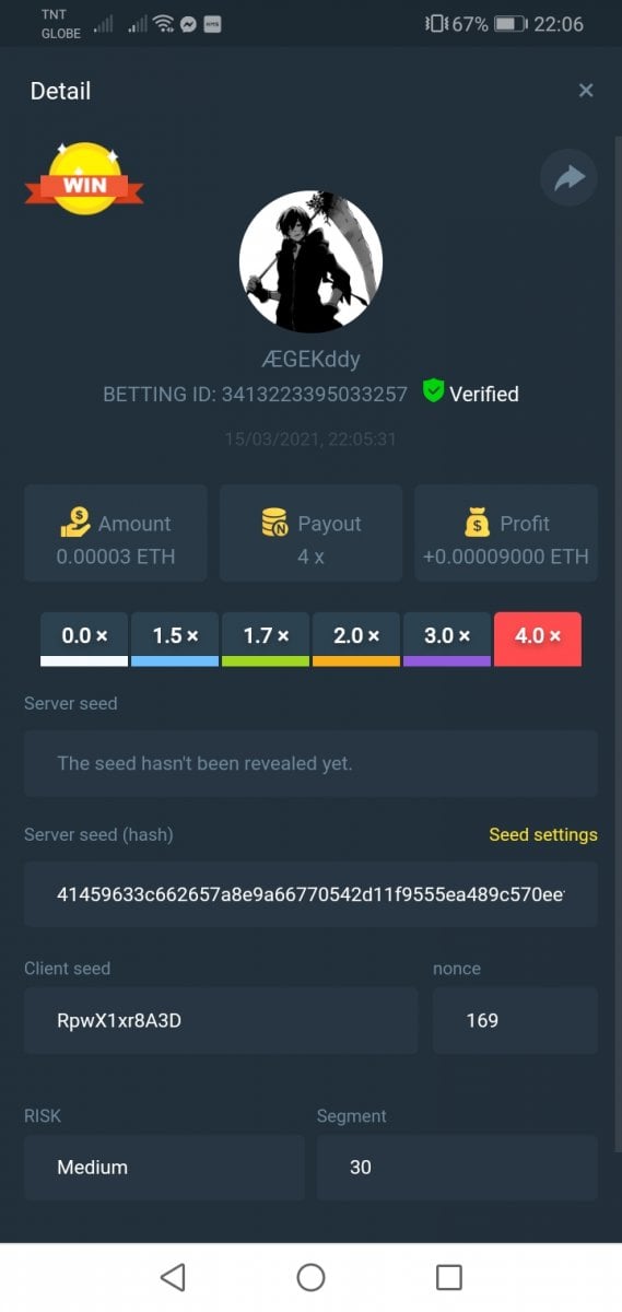 Take a screenshot displaying the bet details and send a reply to this thread with it.