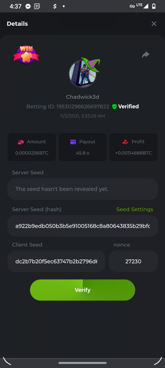 bassabar Posted November 9, 2021 Share Posted November 9, 2021 Betting ID: 13647331597490725 Multiplier: 106.5x Betamount Link to comment Share on other sites More sharing options...