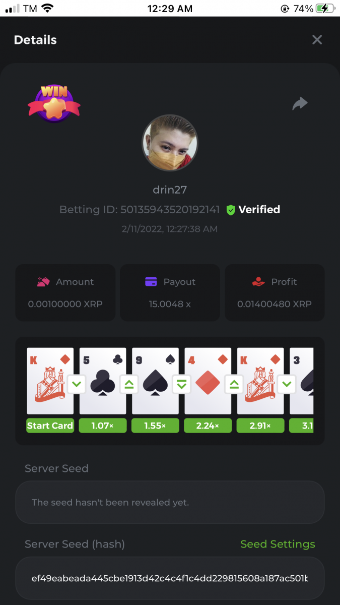 • In the same post, upload a screenshot of your win by clicking the game ID WITH VIEW IN USD mode ENABLED (accessible at the bottom of dropdown menu for your wallet up top. This way, we can ensure that your bet indeed met the minimum requirement at the time of placing it: