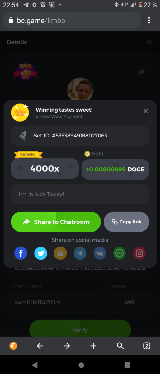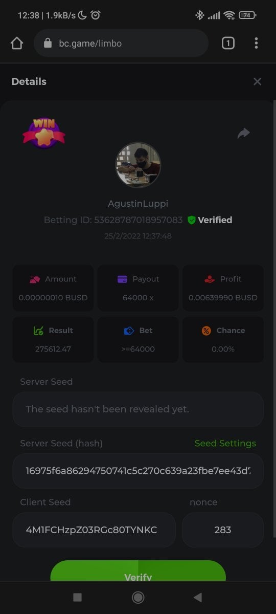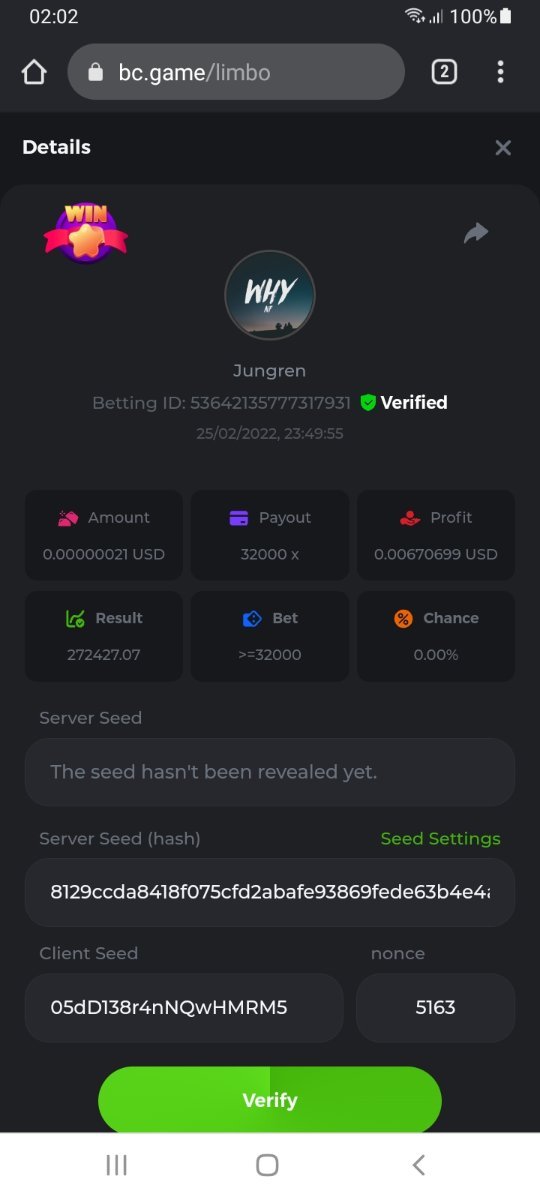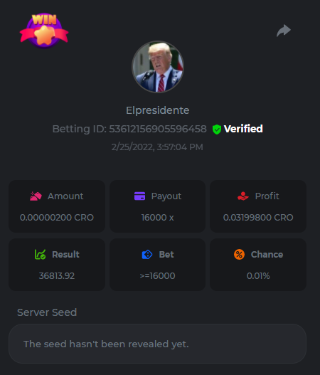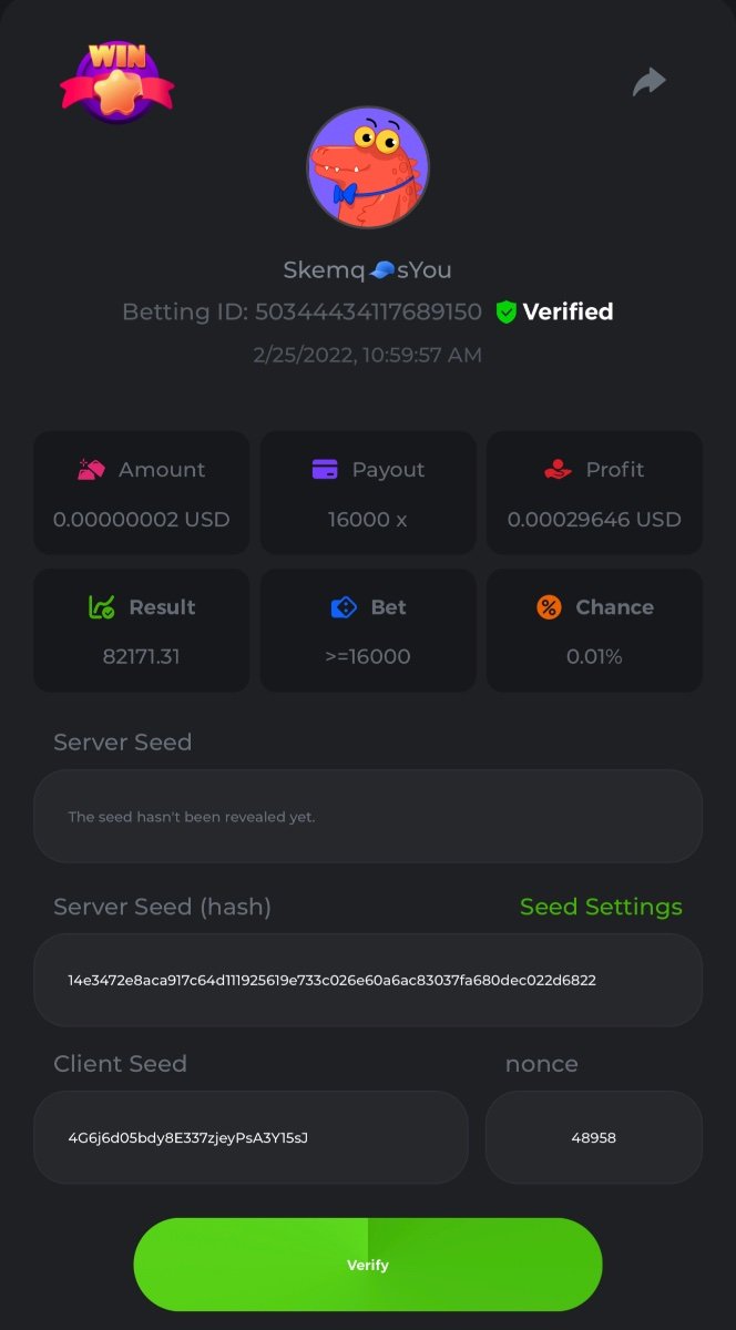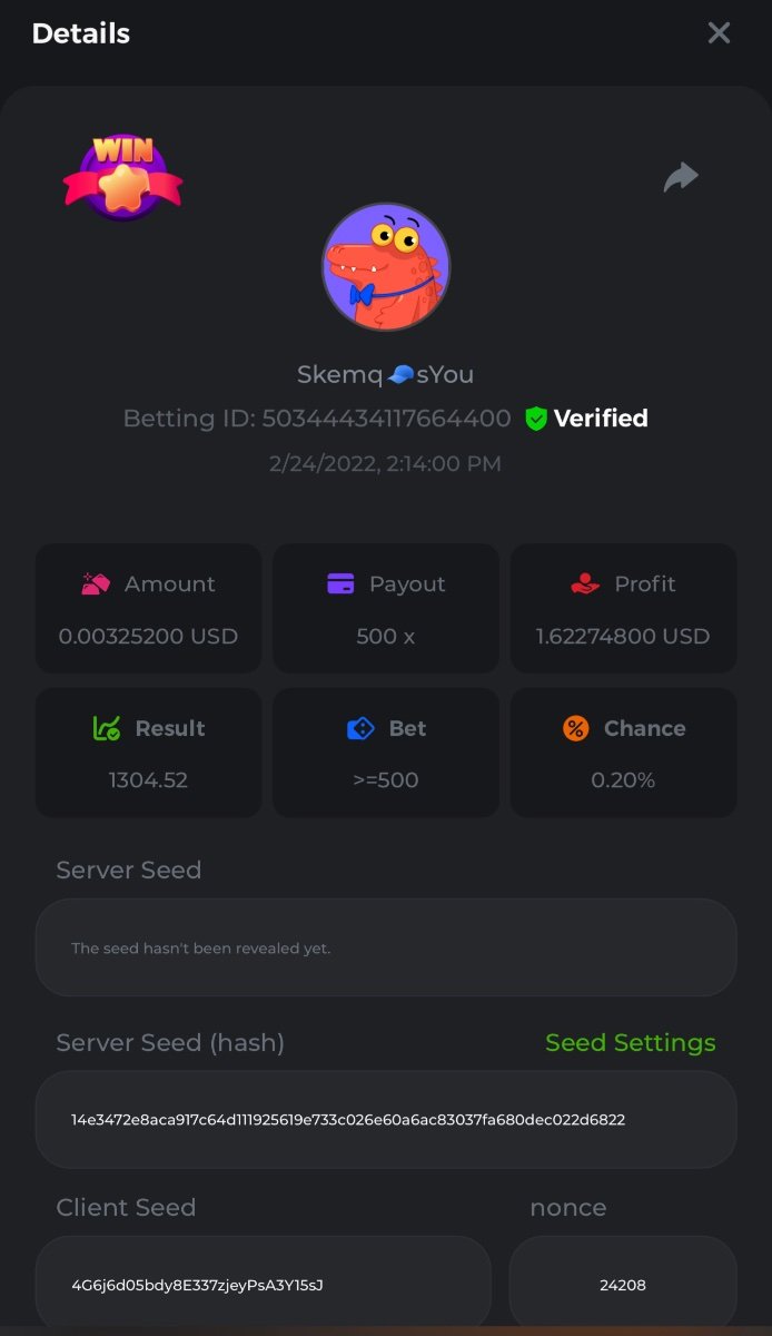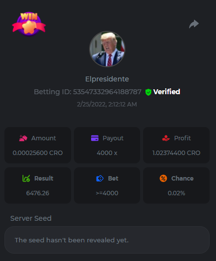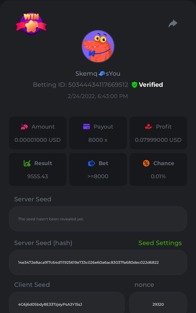 s0urce Posted February 23, 2022 Share Posted February 23, 2022 24 hours Limbo challenge! You have to hit as many multipliers as you can from this list: 500x - 1000x - 2000x - 4000x - 8000x - 16000x - 32000x - 64000x - 128000x - 256000x Players who match the most multipliers will receive a prize. Available Prizes 1st place... $25 2nd place... $12.5 3rd place... $7.5 4th-10th place... $2.5 Rules Don't post old bets Your bets must be a win In case of a tie, the player who wins the bet first will receive the prize. You have to post all the bets in 1 comment, if you want to add another bet, you have to edit your post. Failure to follow instructions will result in your submission being null and void. Requirements There is no minimum VIP level There is no minimum bet How to Enter To enter, copy the link of the bet you'd like to submit. Once you've copied it, paste it as a reply to this thread like so: Link: https://bc.game/sd/?sd=10EV9HVMAI07BN Below there's an illustrative image with more details. In the same post, upload a screenshot of your win by clicking the game ID WITH VIEW IN USD mode ENABLED (accessible at the bottom of dropdown menu for your wallet up top, and Submit Reply. Done! This way, we can ensure that your bet indeed met the minimum requirement at the time of placing it: Link to comment Share on other sites More sharing options...