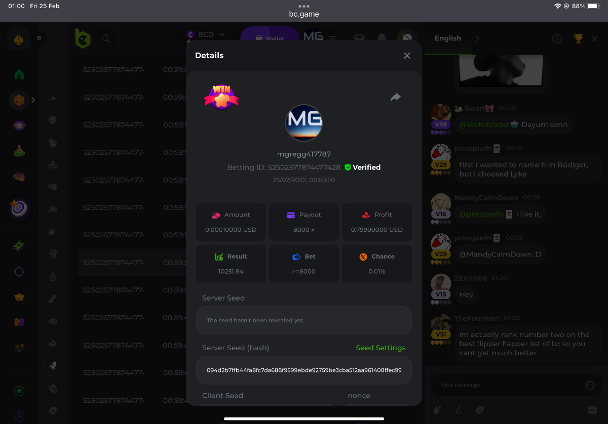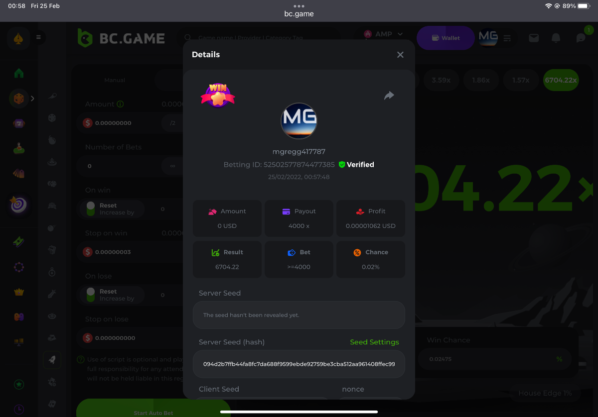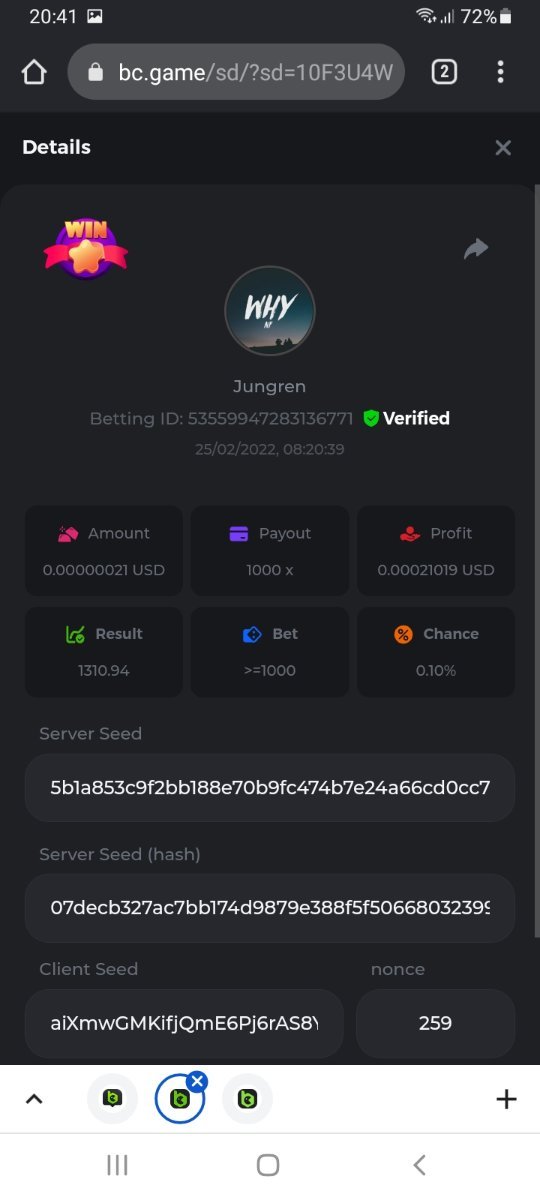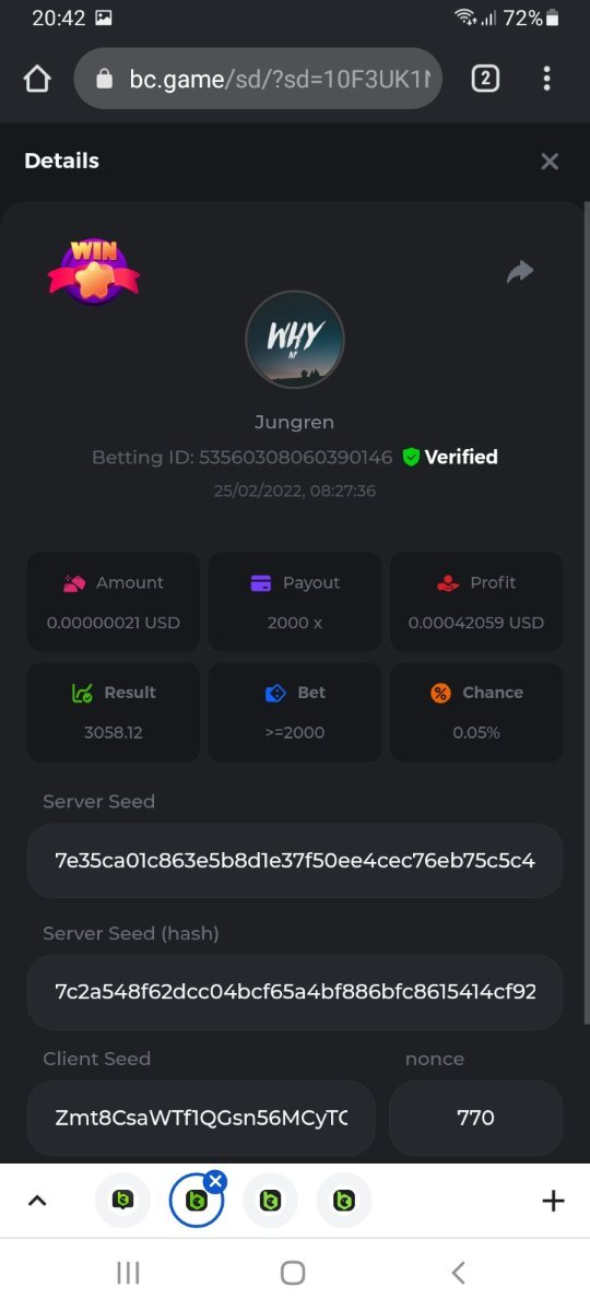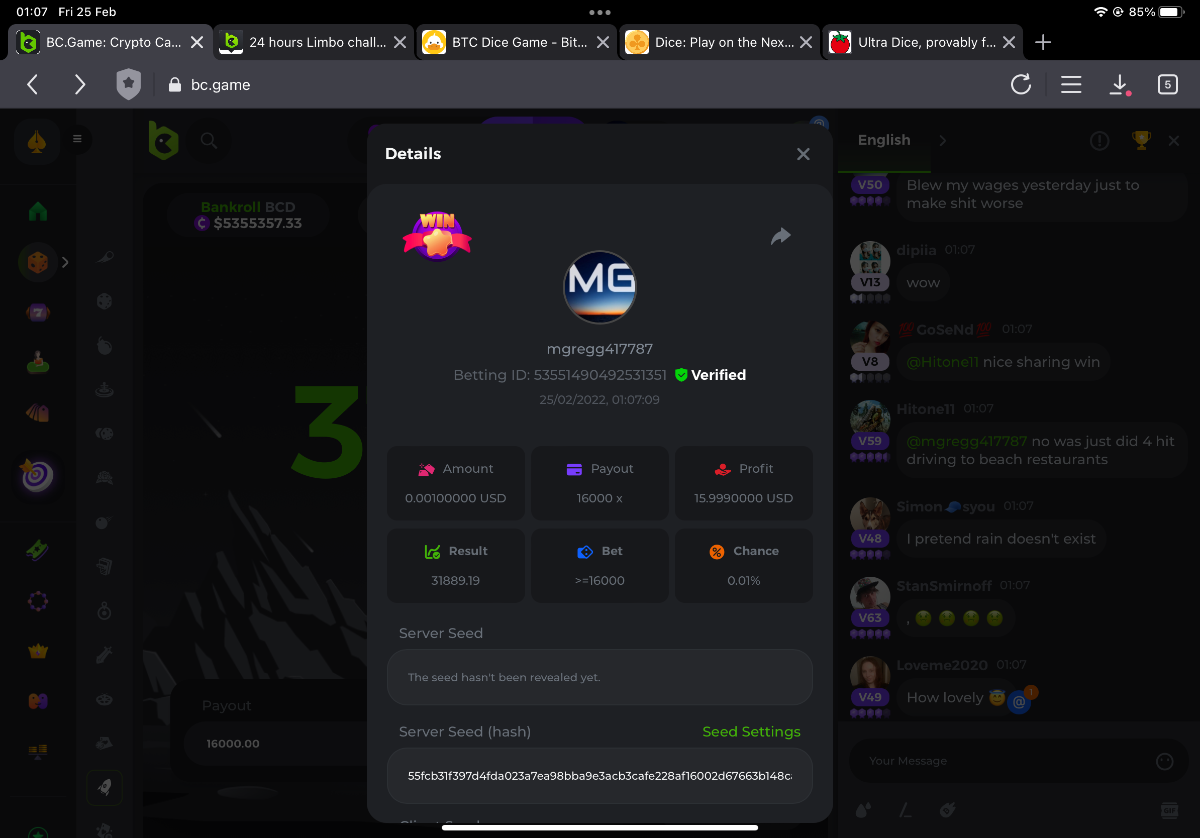 s0urce Posted February 23, 2022 Share Posted February 23, 2022 24 hours Limbo challenge! You have to hit as many multipliers as you can from this list: 500x - 1000x - 2000x - 4000x - 8000x - 16000x - 32000x - 64000x - 128000x - 256000x Players who match the most multipliers will receive a prize. Available Prizes 1st place... $25 2nd place... $12.5 3rd place... $7.5 4th-10th place... $2.5 Rules Don't post old bets Your bets must be a win In case of a tie, the player who wins the bet first will receive the prize. You have to post all the bets in 1 comment, if you want to add another bet, you have to edit your post. Failure to follow instructions will result in your submission being null and void. Requirements There is no minimum VIP level There is no minimum bet How to Enter To enter, copy the link of the bet you'd like to submit. Once you've copied it, paste it as a reply to this thread like so: Link: https://bc.game/sd/?sd=10EV9HVMAI07BN Below there's an illustrative image with more details. In the same post, upload a screenshot of your win by clicking the game ID WITH VIEW IN USD mode ENABLED (accessible at the bottom of dropdown menu for your wallet up top, and Submit Reply. Done! This way, we can ensure that your bet indeed met the minimum requirement at the time of placing it: Link to comment Share on other sites More sharing options...