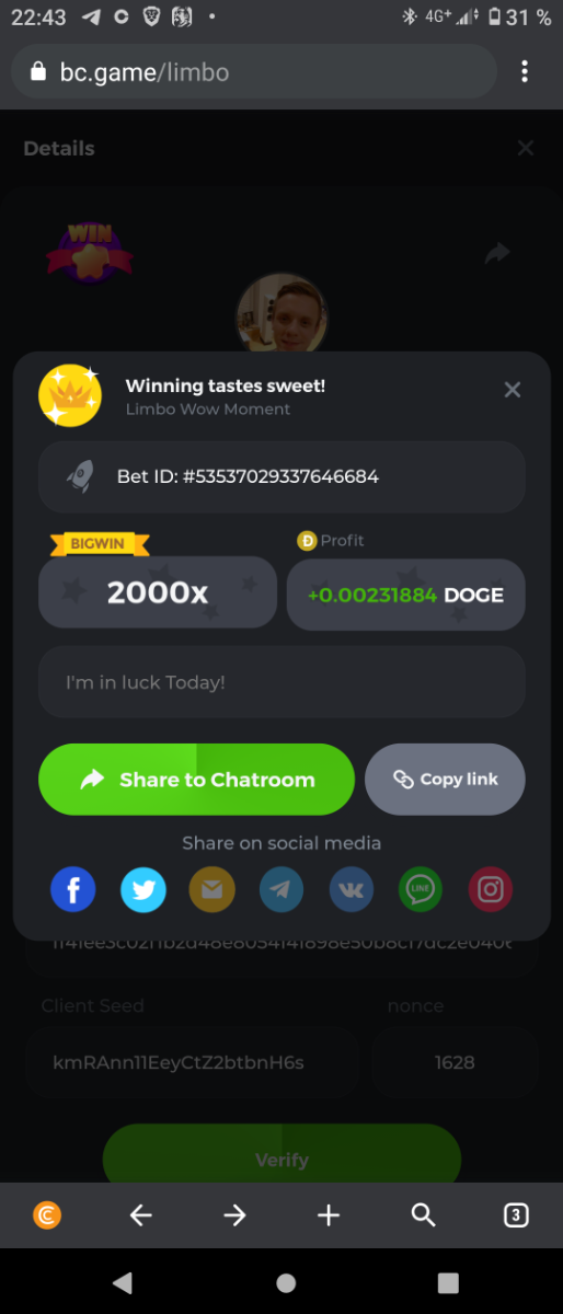 Abcdeminem Posted February 25, 2022 Share Posted February 25, 2022 500x-https://bc.game/sd/?sd=10F3TP9G2U2JV7 1000x-https://bc.game/sd/?sd=10F3U4WQZ3MWWJ 2000x - https://bc.game/sd/?sd=10F3UK1NPMN1N7 4000x -https://bc.game/sd/?sd=10F3XU37LYATQR 8000x-https://bc.game/sd/?sd=10F3ZLFG5FMEQB 16000x-https://bc.game/sd/?sd=10F58AEVBW7H8Z 32000xhttps://bc.game/sd/?sd=10F5NU2Y4A8BGZ 256000x-https://bc.game/sd/?sd=10F3P1TN3Q9PG3(It was bc glitch only got payout 214748 but as you can see bet ) Link to comment Share on other sites More sharing options...