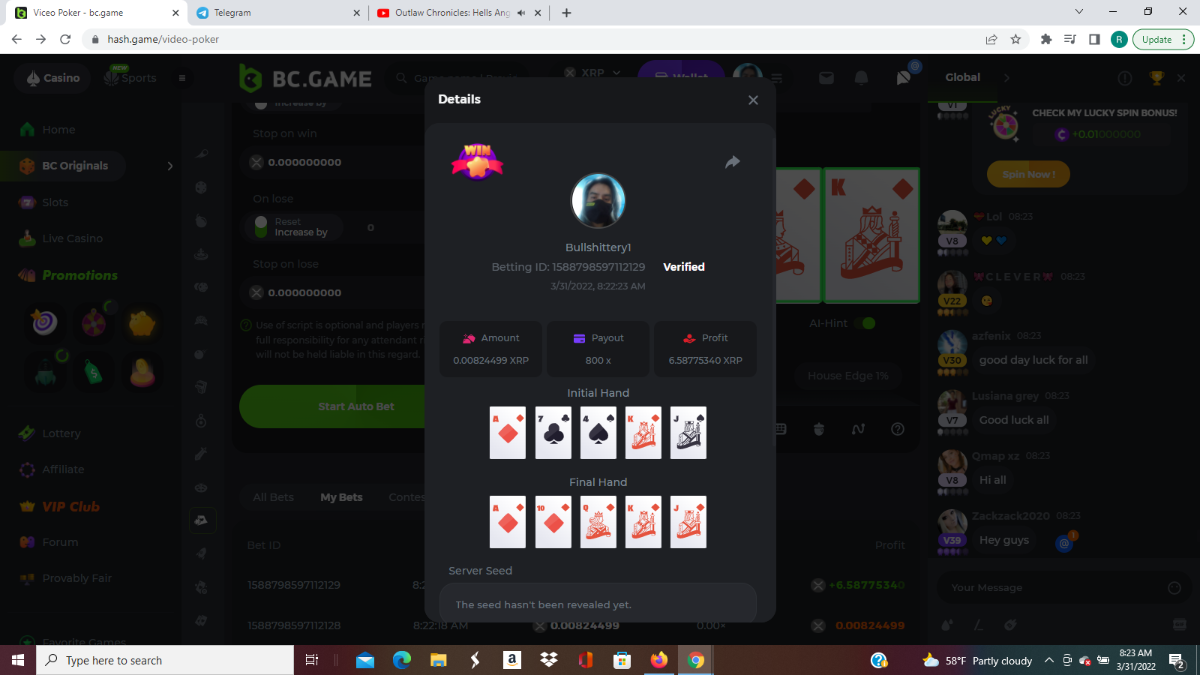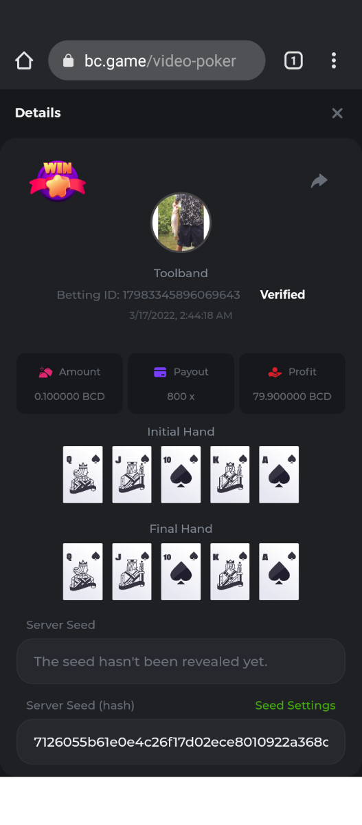 Toolband Posted March 19, 2022 Share Posted March 19, 2022 Couldn't believe my eyes, getting a Royal is all but impossible, but being dealt one! Link to comment Share on other sites More sharing options...