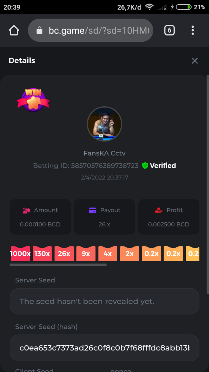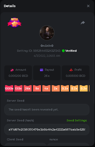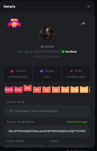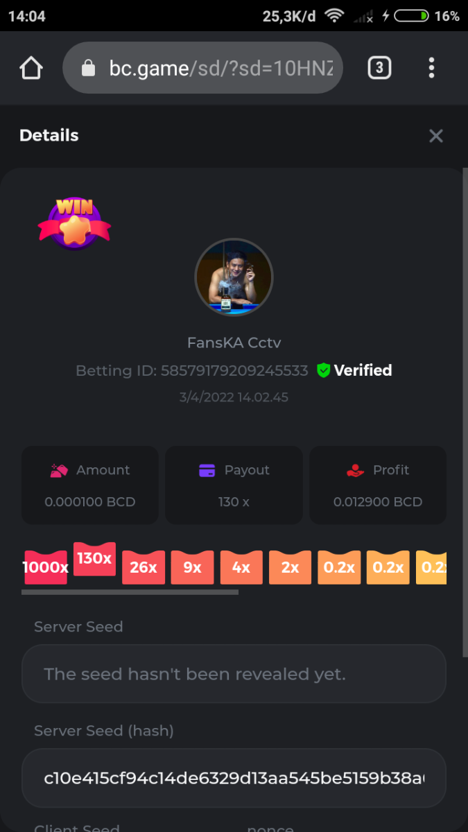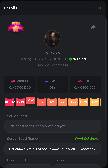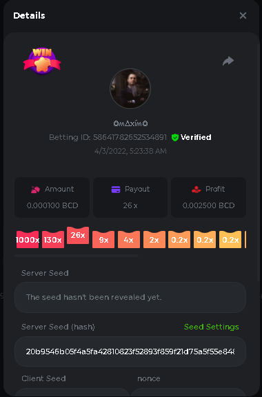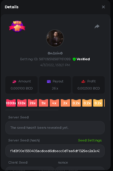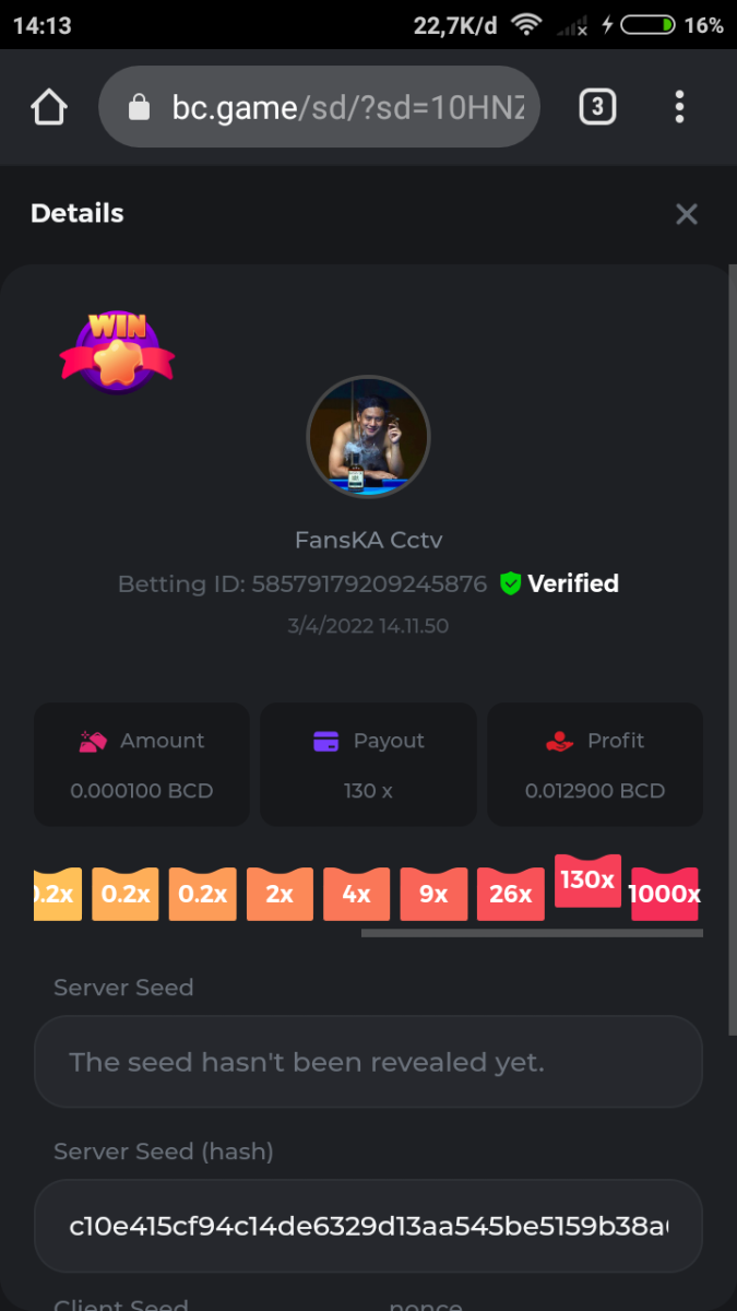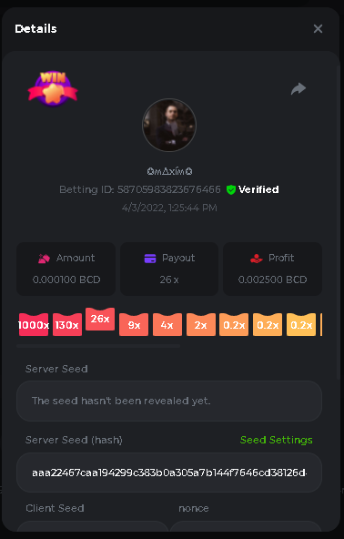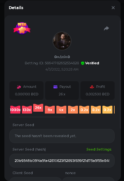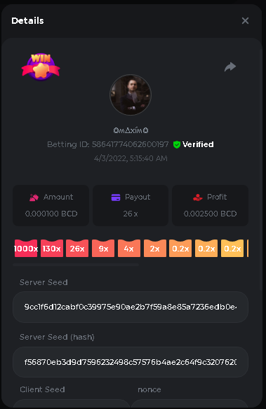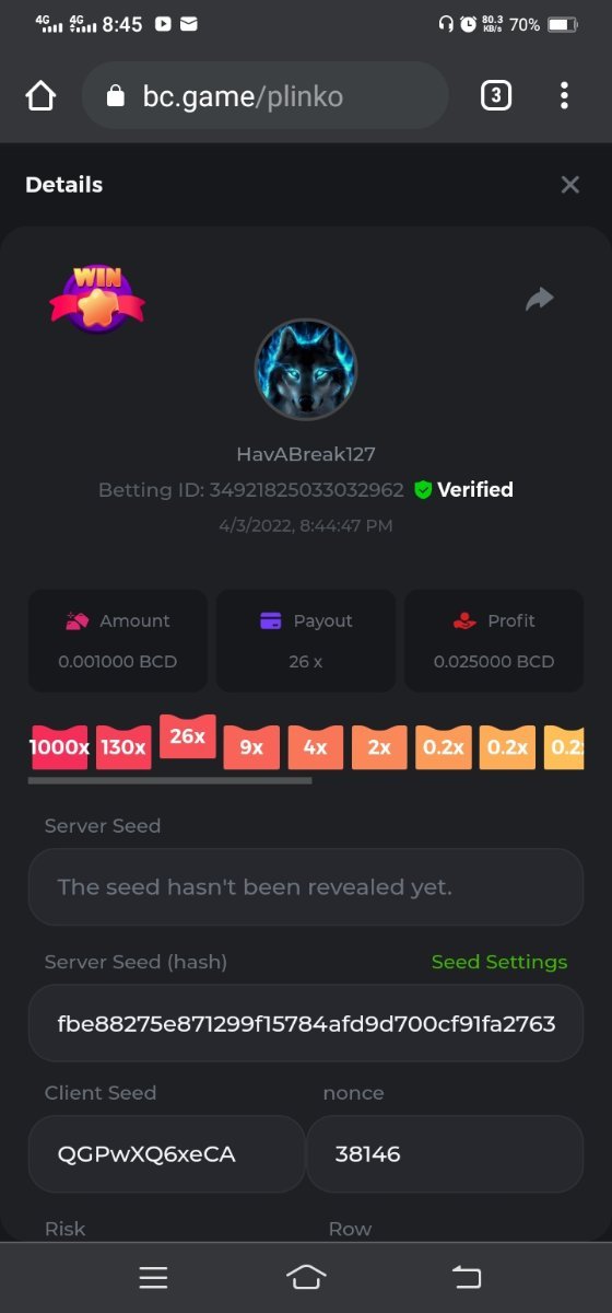 Event Team BCGame_Maxim Posted April 2, 2022 Event Team Share Posted April 2, 2022 BC Profile : https://bc.game/user/profile/2008867 [My Name not updating on forum ] Limbo 2000x = 2 Point Plinko 26x = 121 x 1 = 121 Points Plinko 130x = 18 x 7 = 126 Points Plinko 1000x = 3 x 10 = 30 Points Total = 279 Points https://bc.game/sd/?sd=10HMV099U89R83 https://bc.game/sd/?sd=10HMVUJVQL60PF https://bc.game/sd/?sd=10HMWDJIN8DN9V https://bc.game/sd/?sd=10HMWLM0ENQOLV https://bc.game/sd/?sd=10HMWT2C63O3DF https://bc.game/sd/?sd=10HMX16KP3YYOJ https://bc.game/sd/?sd=10HMX9ZY2GITQR https://bc.game/sd/?sd=10HMXJ4QRR6OSZ https://bc.game/sd/?sd=10HMXVP1UA7XG3 https://bc.game/sd/?sd=10HMY5S8JBCPAR 130x Plinko https://bc.game/sd/?sd=10HMYCLEZN2P03 https://bc.game/sd/?sd=10HMZ48EXJR28J https://bc.game/sd/?sd=10HMZDJEIRCM4Z https://bc.game/sd/?sd=10HMZM7EAJMZ9V https://bc.game/sd/?sd=10HMZT3AQ4ZNKJ Plinko- 130x https://bc.game/sd/?sd=10HMZYAENOWS9F https://bc.game/sd/?sd=10HN02HHARQN83 https://bc.game/sd/?sd=10HN0BJN21AQS3 https://bc.game/sd/?sd=10HN0IBWWC9VDF https://bc.game/sd/?sd=10HN0Z0OHFFAQB https://bc.game/sd/?sd=10HN1C9UFBWJKJ https://bc.game/sd/?sd=10HN1FU9X2SH03 https://bc.game/sd/?sd=10HN1LH3YEB8R7 https://bc.game/sd/?sd=10HN1TPUHD6YOJ https://bc.game/sd/?sd=10HN1Y55WK6TCJ https://bc.game/sd/?sd=10HN292WYUHWYB Plinko-130x https://bc.game/sd/?sd=10HN2ENVY81WK3 https://bc.game/sd/?sd=10HN2SV3QUPIC3 https://bc.game/sd/?sd=10HN2WTCI8K2KZ https://bc.game/sd/?sd=10HN30904JDES3 https://bc.game/sd/?sd=10HN3AZYMI0E8J https://bc.game/sd/?sd=10HN4K9RMD4BV7 https://bc.game/sd/?sd=10HN57R2MUSMC3 https://bc.game/sd/?sd=10HN5WIE1XR503 https://bc.game/sd/?sd=10HN6KCSR8N95F https://bc.game/sd/?sd=10HN6S682AXLOZ Plinko-130x https://bc.game/sd/?sd=10HN7HZ3QIRP5F https://bc.game/sd/?sd=10HN7L7LU1BV2R https://bc.game/sd/?sd=10HN89KTDX3HUB https://bc.game/sd/?sd=10HN994FWQV3TF Plinko-130x https://bc.game/sd/?sd=10HNA40IUSMDQR https://bc.game/sd/?sd=10HNAA4JGDF5LF https://bc.game/sd/?sd=10HNAD0BG2U9SJ https://bc.game/sd/?sd=10HNAG3EZC55HV https://bc.game/sd/?sd=10HNAKHSXAN9QR https://bc.game/sd/?sd=10HNARO51J23O3 Plinko-130x https://bc.game/sd/?sd=10HO2VCGZ75KIB https://bc.game/sd/?sd=10HO31ND4L9V6B https://bc.game/sd/?sd=10HO343E8S7O5V Plinko-130x https://bc.game/sd/?sd=10HO3O2SNVO2KZ https://bc.game/sd/?sd=10HO3SWFIILK43 https://bc.game/sd/?sd=10HO43ZMHL81LF https://bc.game/sd/?sd=10HO46YX9L0G0J https://bc.game/sd/?sd=10HO4ARQ0PUQDV https://bc.game/sd/?sd=10HO4F5PPD9NV7 https://bc.game/sd/?sd=10HO4HR1HCBTOZ https://bc.game/sd/?sd=10HO4K89322T5F Plinko-130x https://bc.game/sd/?sd=10HO4OKBHZV4ER https://bc.game/sd/?sd=10HO59IGVB7Y1F https://bc.game/sd/?sd=10HO5DJJWBPGCZ https://bc.game/sd/?sd=10HO5GWWINUNMB https://bc.game/sd/?sd=10HO5U3ZSMKETV https://bc.game/sd/?sd=10HO6110G8KRV7 https://bc.game/sd/?sd=10HO678DKO0POZ https://bc.game/sd/?sd=10HO6FWW88UQKZ https://bc.game/sd/?sd=10HO6LXNMMPZIR https://bc.game/sd/?sd=10HO6NKJ5D3TOZ https://bc.game/sd/?sd=10HO6VT6XHL7O3 https://bc.game/sd/?sd=10HO71JDL4M2OJ Plinko-130x https://bc.game/sd/?sd=10HO75TGBNBH8Z https://bc.game/sd/?sd=10HO79NAP5VJMB https://bc.game/sd/?sd=10HO7R9R882W43 https://bc.game/sd/?sd=10HO7UII8JLC0J Plinko-1000x https://bc.game/sd/?sd=10HO84GYI4KYDV Plinko-1000x https://bc.game/sd/?sd=10HO8AU8AUG74J https://bc.game/sd/?sd=10HO8O8SKBHNV7 Plinko-130x https://bc.game/sd/?sd=10HO94ZEKSY49F https://bc.game/sd/?sd=10HO9Z2X4F455F https://bc.game/sd/?sd=10HOA28RUAP3WZ https://bc.game/sd/?sd=10HOA4Z4450G0J https://bc.game/sd/?sd=10HOA8ARZPO8PF https://bc.game/sd/?sd=10HOAAJSJQML1V https://bc.game/sd/?sd=10HOAE95XPHFKJ https://bc.game/sd/?sd=10HOAKACLTL3PV Plinko-130x https://bc.game/sd/?sd=10HOAQJDNJBKER Plinko-130x https://bc.game/sd/?sd=10HOAYXR7YQYHF https://bc.game/sd/?sd=10HOB7V4IYWQVN https://bc.game/sd/?sd=10HOBL2RW2WB2R https://bc.game/sd/?sd=10HOBUT5Z45LAR https://bc.game/sd/?sd=10HOBW3HLRDGCZ https://bc.game/sd/?sd=10HOF4QGQJM4GJ https://bc.game/sd/?sd=10HOGCG97AT0K3 Plinko-130x https://bc.game/sd/?sd=10HOGG6JHP01SJ https://bc.game/sd/?sd=10HOH1JN7WJTW3 https://bc.game/sd/?sd=10HOH7ILXBFCB7 https://bc.game/sd/?sd=10HOHHEBQASCUR https://bc.game/sd/?sd=10HOIB0E80URKJ https://bc.game/sd/?sd=10HOIFGBZV7B4J Plinko-130x https://bc.game/sd/?sd=10HOIMGJTU8PW3 https://bc.game/sd/?sd=10HONW6VSJC3DF https://bc.game/sd/?sd=10HOO5VQ3F9FKJ https://bc.game/sd/?sd=10HOOLCJI97THV https://bc.game/sd/?sd=10HOOOK1A7SHLF Plinko-130x https://bc.game/sd/?sd=10HOOU172Q9EDV https://bc.game/sd/?sd=10HOOX6EV55YC3 https://bc.game/sd/?sd=10HOP3ZXXTSX03 https://bc.game/sd/?sd=10HOPACAN64KCZ https://bc.game/sd/?sd=10HOPDGU3UFS43 https://bc.game/sd/?sd=10HOPJO4AHNZ0Z https://bc.game/sd/?sd=10HOPSWNJA239V https://bc.game/sd/?sd=10HOPWEDOAAJ9V https://bc.game/sd/?sd=10HOQ3UQDHY783 Plinko-130x https://bc.game/sd/?sd=10HOQNTV97YXW3 https://bc.game/sd/?sd=10HORN4SWQ0LCJ https://bc.game/sd/?sd=10HORTQ3E7XY4Z https://bc.game/sd/?sd=10HOSK9W0XANF7 https://bc.game/sd/?sd=10HOSNUQVV1F6B Plinko-1000x https://bc.game/sd/?sd=10HOSX2PK5F28J Plinko-130x https://bc.game/sd/?sd=10HOULHX9FGU1F https://bc.game/sd/?sd=10HOUW66W1ANF7 https://bc.game/sd/?sd=10HOV6VNFRBXN7 https://bc.game/sd/?sd=10HOVGGNJCZQ4Z https://bc.game/sd/?sd=10HOW4N7L21G5V https://bc.game/sd/?sd=10HOWOMVVND637 https://bc.game/sd/?sd=10HOWTV42YBJ0Z https://bc.game/sd/?sd=10HOWZKCAO9ES3 https://bc.game/sd/?sd=10HOZ7DLY43M6R https://bc.game/sd/?sd=10HOZCNJ1DYPEB https://bc.game/sd/?sd=10HOZIN5QEOS9F https://bc.game/sd/?sd=10HOZRDT7YLJWZ https://bc.game/sd/?sd=10HOZWXR98PZ4J https://bc.game/sd/?sd=10HP091AQUA7MB https://bc.game/sd/?sd=10HP0BQVNOTYXF https://bc.game/sd/?sd=10HP16NTRPQL8Z https://bc.game/sd/?sd=10HP19CNZU4PAR Plinko-130x https://bc.game/sd/?sd=10HP1J6P5IAXOZ https://bc.game/sd/?sd=10HP2J75KHKR2R https://bc.game/sd/?sd=10HP2LZZQ9ECCZ https://bc.game/sd/?sd=10HP2QCAO5I6FN https://bc.game/sd/?sd=10HP4QM5RLN11V https://bc.game/sd/?sd=10HP534ZZRRH8Z https://bc.game/sd/?sd=10HP57HKDJZ6DV https://bc.game/sd/?sd=10HP5NR3OIC103 h