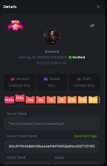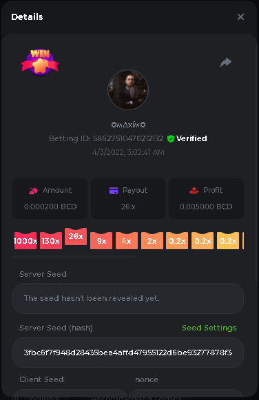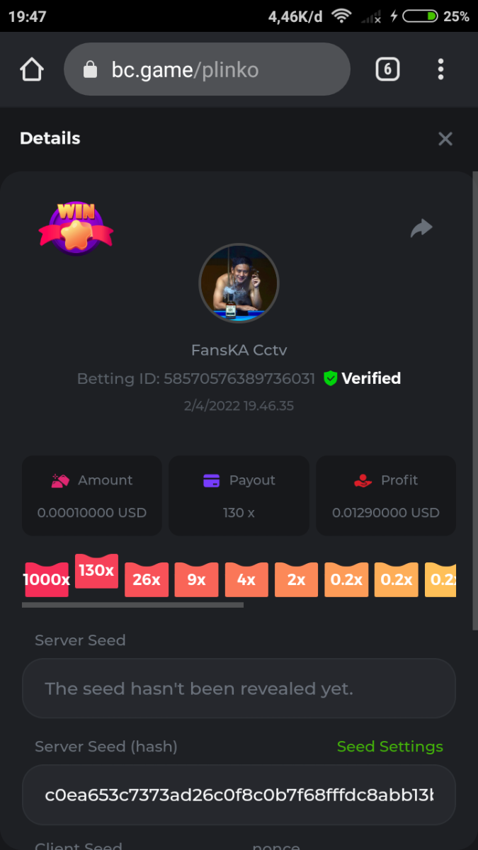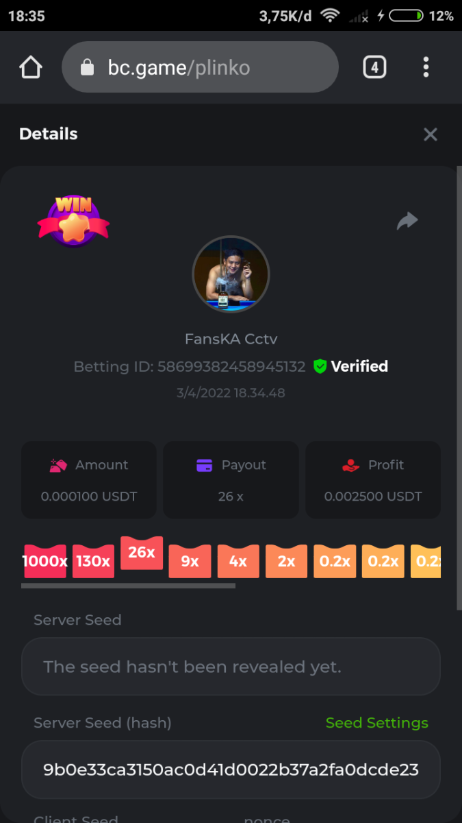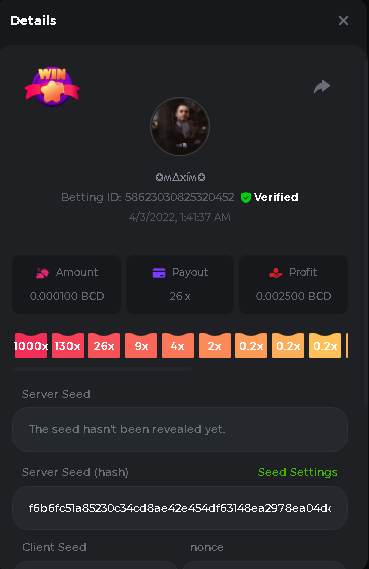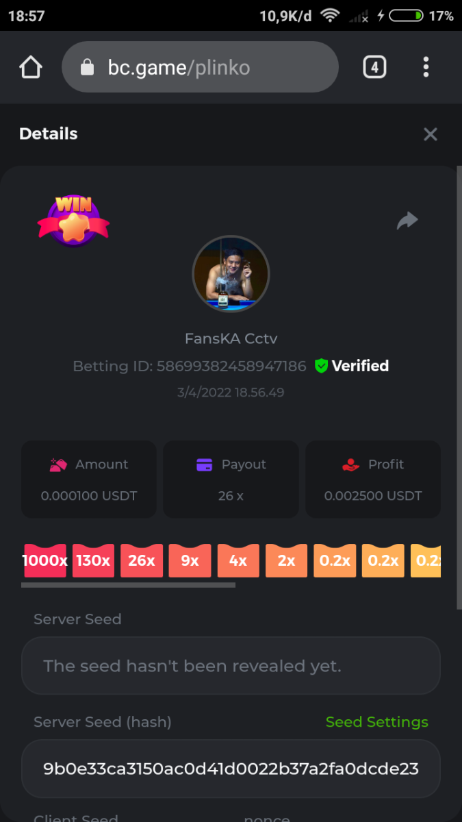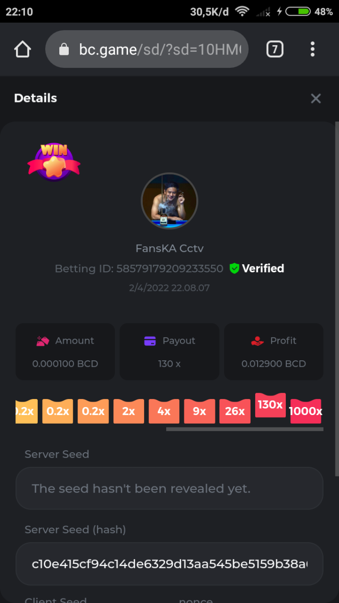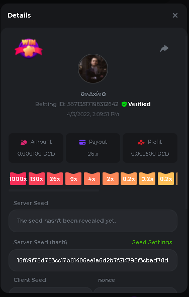 Event Team BCGame_Maxim Posted April 2, 2022 Event Team Share Posted April 2, 2022 BC Profile : https://bc.game/user/profile/2008867 [My Name not updating on forum ] Limbo 2000x = 2 Point Plinko 26x = 121 x 1 = 121 Points Plinko 130x = 18 x 7 = 126 Points Plinko 1000x = 3 x 10 = 30 Points Total = 279 Points https://bc.game/sd/?sd=10HMV099U89R83 https://bc.game/sd/?sd=10HMVUJVQL60PF https://bc.game/sd/?sd=10HMWDJIN8DN9V https://bc.game/sd/?sd=10HMWLM0ENQOLV https://bc.game/sd/?sd=10HMWT2C63O3DF https://bc.game/sd/?sd=10HMX16KP3YYOJ https://bc.game/sd/?sd=10HMX9ZY2GITQR https://bc.game/sd/?sd=10HMXJ4QRR6OSZ https://bc.game/sd/?sd=10HMXVP1UA7XG3 https://bc.game/sd/?sd=10HMY5S8JBCPAR 130x Plinko https://bc.game/sd/?sd=10HMYCLEZN2P03 https://bc.game/sd/?sd=10HMZ48EXJR28J https://bc.game/sd/?sd=10HMZDJEIRCM4Z https://bc.game/sd/?sd=10HMZM7EAJMZ9V https://bc.game/sd/?sd=10HMZT3AQ4ZNKJ Plinko- 130x https://bc.game/sd/?sd=10HMZYAENOWS9F https://bc.game/sd/?sd=10HN02HHARQN83 https://bc.game/sd/?sd=10HN0BJN21AQS3 https://bc.game/sd/?sd=10HN0IBWWC9VDF https://bc.game/sd/?sd=10HN0Z0OHFFAQB https://bc.game/sd/?sd=10HN1C9UFBWJKJ https://bc.game/sd/?sd=10HN1FU9X2SH03 https://bc.game/sd/?sd=10HN1LH3YEB8R7 https://bc.game/sd/?sd=10HN1TPUHD6YOJ https://bc.game/sd/?sd=10HN1Y55WK6TCJ https://bc.game/sd/?sd=10HN292WYUHWYB Plinko-130x https://bc.game/sd/?sd=10HN2ENVY81WK3 https://bc.game/sd/?sd=10HN2SV3QUPIC3 https://bc.game/sd/?sd=10HN2WTCI8K2KZ https://bc.game/sd/?sd=10HN30904JDES3 https://bc.game/sd/?sd=10HN3AZYMI0E8J https://bc.game/sd/?sd=10HN4K9RMD4BV7 https://bc.game/sd/?sd=10HN57R2MUSMC3 https://bc.game/sd/?sd=10HN5WIE1XR503 https://bc.game/sd/?sd=10HN6KCSR8N95F https://bc.game/sd/?sd=10HN6S682AXLOZ Plinko-130x https://bc.game/sd/?sd=10HN7HZ3QIRP5F https://bc.game/sd/?sd=10HN7L7LU1BV2R https://bc.game/sd/?sd=10HN89KTDX3HUB https://bc.game/sd/?sd=10HN994FWQV3TF Plinko-130x https://bc.game/sd/?sd=10HNA40IUSMDQR https://bc.game/sd/?sd=10HNAA4JGDF5LF https://bc.game/sd/?sd=10HNAD0BG2U9SJ https://bc.game/sd/?sd=10HNAG3EZC55HV https://bc.game/sd/?sd=10HNAKHSXAN9QR https://bc.game/sd/?sd=10HNARO51J23O3 Plinko-130x https://bc.game/sd/?sd=10HO2VCGZ75KIB https://bc.game/sd/?sd=10HO31ND4L9V6B https://bc.game/sd/?sd=10HO343E8S7O5V Plinko-130x https://bc.game/sd/?sd=10HO3O2SNVO2KZ https://bc.game/sd/?sd=10HO3SWFIILK43 https://bc.game/sd/?sd=10HO43ZMHL81LF https://bc.game/sd/?sd=10HO46YX9L0G0J https://bc.game/sd/?sd=10HO4ARQ0PUQDV https://bc.game/sd/?sd=10HO4F5PPD9NV7 https://bc.game/sd/?sd=10HO4HR1HCBTOZ https://bc.game/sd/?sd=10HO4K89322T5F Plinko-130x https://bc.game/sd/?sd=10HO4OKBHZV4ER https://bc.game/sd/?sd=10HO59IGVB7Y1F https://bc.game/sd/?sd=10HO5DJJWBPGCZ https://bc.game/sd/?sd=10HO5GWWINUNMB https://bc.game/sd/?sd=10HO5U3ZSMKETV https://bc.game/sd/?sd=10HO6110G8KRV7 https://bc.game/sd/?sd=10HO678DKO0POZ https://bc.game/sd/?sd=10HO6FWW88UQKZ https://bc.game/sd/?sd=10HO6LXNMMPZIR https://bc.game/sd/?sd=10HO6NKJ5D3TOZ https://bc.game/sd/?sd=10HO6VT6XHL7O3 https://bc.game/sd/?sd=10HO71JDL4M2OJ Plinko-130x https://bc.game/sd/?sd=10HO75TGBNBH8Z https://bc.game/sd/?sd=10HO79NAP5VJMB https://bc.game/sd/?sd=10HO7R9R882W43 https://bc.game/sd/?sd=10HO7UII8JLC0J Plinko-1000x https://bc.game/sd/?sd=10HO84GYI4KYDV Plinko-1000x https://bc.game/sd/?sd=10HO8AU8AUG74J https://bc.game/sd/?sd=10HO8O8SKBHNV7 Plinko-130x https://bc.game/sd/?sd=10HO94ZEKSY49F https://bc.game/sd/?sd=10HO9Z2X4F455F https://bc.game/sd/?sd=10HOA28RUAP3WZ https://bc.game/sd/?sd=10HOA4Z4450G0J https://bc.game/sd/?sd=10HOA8ARZPO8PF https://bc.game/sd/?sd=10HOAAJSJQML1V https://bc.game/sd/?sd=10HOAE95XPHFKJ https://bc.game/sd/?sd=10HOAKACLTL3PV Plinko-130x https://bc.game/sd/?sd=10HOAQJDNJBKER Plinko-130x https://bc.game/sd/?sd=10HOAYXR7YQYHF https://bc.game/sd/?sd=10HOB7V4IYWQVN https://bc.game/sd/?sd=10HOBL2RW2WB2R https://bc.game/sd/?sd=10HOBUT5Z45LAR https://bc.game/sd/?sd=10HOBW3HLRDGCZ https://bc.game/sd/?sd=10HOF4QGQJM4GJ https://bc.game/sd/?sd=10HOGCG97AT0K3 Plinko-130x https://bc.game/sd/?sd=10HOGG6JHP01SJ https://bc.game/sd/?sd=10HOH1JN7WJTW3 https://bc.game/sd/?sd=10HOH7ILXBFCB7 https://bc.game/sd/?sd=10HOHHEBQASCUR https://bc.game/sd/?sd=10HOIB0E80URKJ https://bc.game/sd/?sd=10HOIFGBZV7B4J Plinko-130x https://bc.game/sd/?sd=10HOIMGJTU8PW3 https://bc.game/sd/?sd=10HONW6VSJC3DF https://bc.game/sd/?sd=10HOO5VQ3F9FKJ https://bc.game/sd/?sd=10HOOLCJI97THV https://bc.game/sd/?sd=10HOOOK1A7SHLF Plinko-130x https://bc.game/sd/?sd=10HOOU172Q9EDV https://bc.game/sd/?sd=10HOOX6EV55YC3 https://bc.game/sd/?sd=10HOP3ZXXTSX03 https://bc.game/sd/?sd=10HOPACAN64KCZ https://bc.game/sd/?sd=10HOPDGU3UFS43 https://bc.game/sd/?sd=10HOPJO4AHNZ0Z https://bc.game/sd/?sd=10HOPSWNJA239V https://bc.game/sd/?sd=10HOPWEDOAAJ9V https://bc.game/sd/?sd=10HOQ3UQDHY783 Plinko-130x https://bc.game/sd/?sd=10HOQNTV97YXW3 https://bc.game/sd/?sd=10HORN4SWQ0LCJ https://bc.game/sd/?sd=10HORTQ3E7XY4Z https://bc.game/sd/?sd=10HOSK9W0XANF7 https://bc.game/sd/?sd=10HOSNUQVV1F6B Plinko-1000x https://bc.game/sd/?sd=10HOSX2PK5F28J Plinko-130x https://bc.game/sd/?sd=10HOULHX9FGU1F https://bc.game/sd/?sd=10HOUW66W1ANF7 https://bc.game/sd/?sd=10HOV6VNFRBXN7 https://bc.game/sd/?sd=10HOVGGNJCZQ4Z https://bc.game/sd/?sd=10HOW4N7L21G5V https://bc.game/sd/?sd=10HOWOMVVND637 https://bc.game/sd/?sd=10HOWTV42YBJ0Z https://bc.game/sd/?sd=10HOWZKCAO9ES3 https://bc.game/sd/?sd=10HOZ7DLY43M6R https://bc.game/sd/?sd=10HOZCNJ1DYPEB https://bc.game/sd/?sd=10HOZIN5QEOS9F https://bc.game/sd/?sd=10HOZRDT7YLJWZ https://bc.game/sd/?sd=10HOZWXR98PZ4J https://bc.game/sd/?sd=10HP091AQUA7MB https://bc.game/sd/?sd=10HP0BQVNOTYXF https://bc.game/sd/?sd=10HP16NTRPQL8Z https://bc.game/sd/?sd=10HP19CNZU4PAR Plinko-130x https://bc.game/sd/?sd=10HP1J6P5IAXOZ https://bc.game/sd/?sd=10HP2J75KHKR2R https://bc.game/sd/?sd=10HP2LZZQ9ECCZ https://bc.game/sd/?sd=10HP2QCAO5I6FN https://bc.game/sd/?sd=10HP4QM5RLN11V https://bc.game/sd/?sd=10HP534ZZRRH8Z https://bc.game/sd/?sd=10HP57HKDJZ6DV https://bc.game/sd/?sd=10HP5NR3OIC103 h