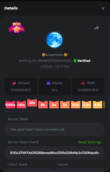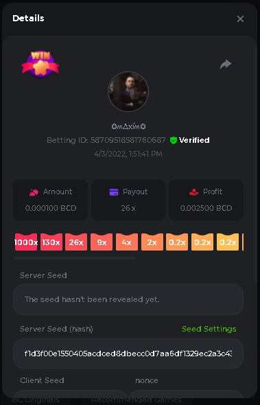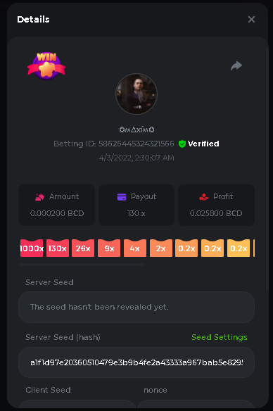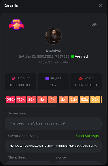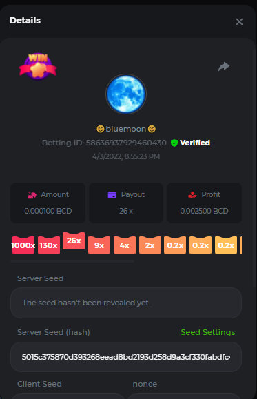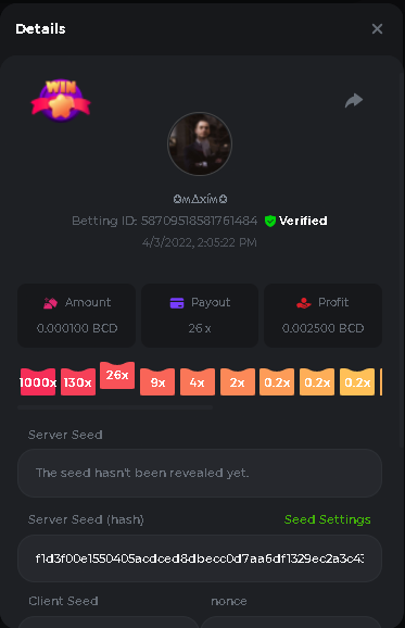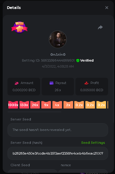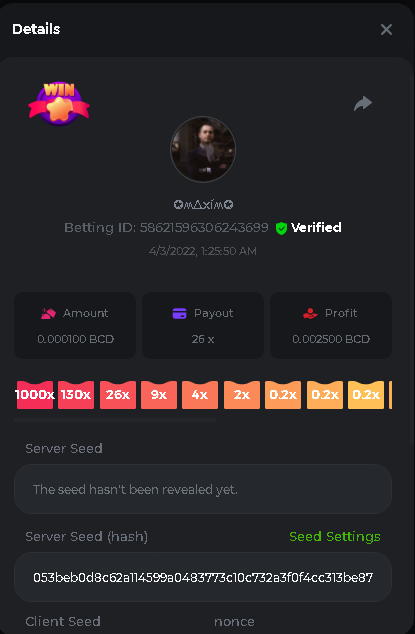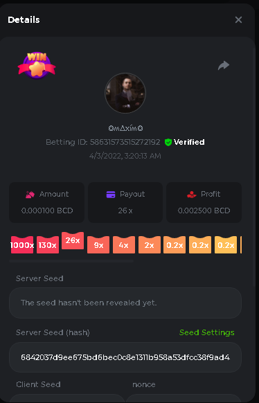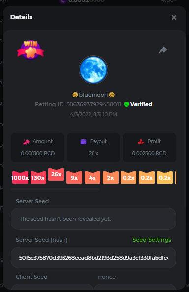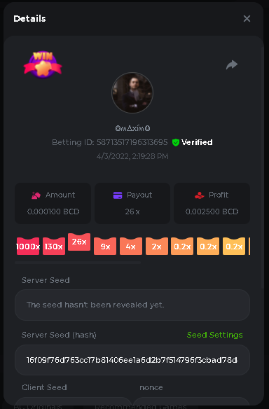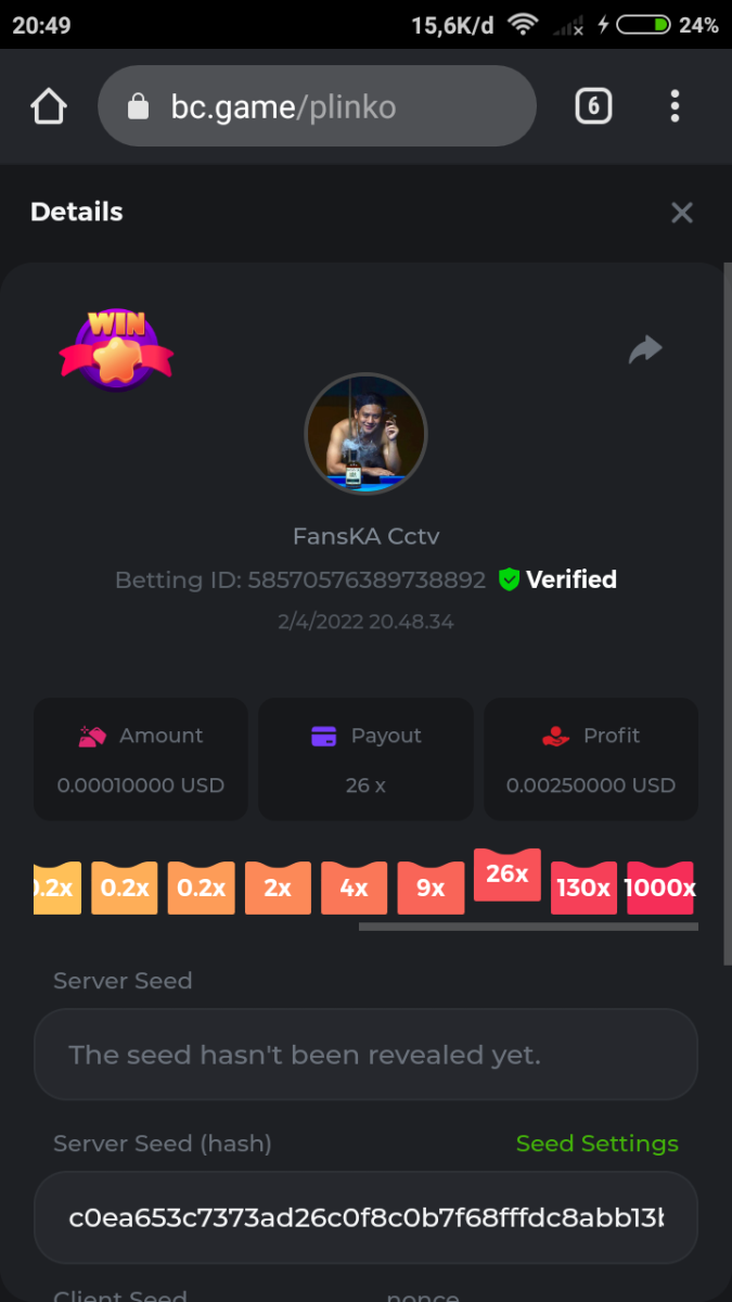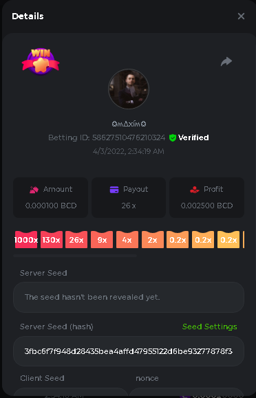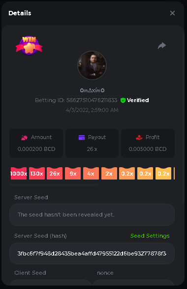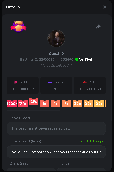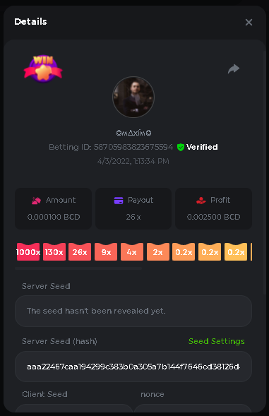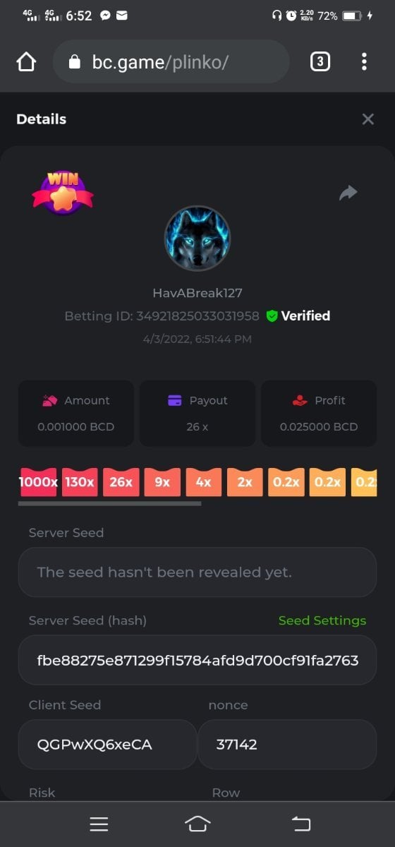Event Team BCGame_Maxim Posted April 2, 2022 Event Team Share Posted April 2, 2022 BC Profile : https://bc.game/user/profile/2008867 [My Name not updating on forum ] Limbo 2000x = 2 Point Plinko 26x = 121 x 1 = 121 Points Plinko 130x = 18 x 7 = 126 Points Plinko 1000x = 3 x 10 = 30 Points Total = 279 Points https://bc.game/sd/?sd=10HMV099U89R83 https://bc.game/sd/?sd=10HMVUJVQL60PF https://bc.game/sd/?sd=10HMWDJIN8DN9V https://bc.game/sd/?sd=10HMWLM0ENQOLV https://bc.game/sd/?sd=10HMWT2C63O3DF https://bc.game/sd/?sd=10HMX16KP3YYOJ https://bc.game/sd/?sd=10HMX9ZY2GITQR https://bc.game/sd/?sd=10HMXJ4QRR6OSZ https://bc.game/sd/?sd=10HMXVP1UA7XG3 https://bc.game/sd/?sd=10HMY5S8JBCPAR 130x Plinko https://bc.game/sd/?sd=10HMYCLEZN2P03 https://bc.game/sd/?sd=10HMZ48EXJR28J https://bc.game/sd/?sd=10HMZDJEIRCM4Z https://bc.game/sd/?sd=10HMZM7EAJMZ9V https://bc.game/sd/?sd=10HMZT3AQ4ZNKJ Plinko- 130x https://bc.game/sd/?sd=10HMZYAENOWS9F https://bc.game/sd/?sd=10HN02HHARQN83 https://bc.game/sd/?sd=10HN0BJN21AQS3 https://bc.game/sd/?sd=10HN0IBWWC9VDF https://bc.game/sd/?sd=10HN0Z0OHFFAQB https://bc.game/sd/?sd=10HN1C9UFBWJKJ https://bc.game/sd/?sd=10HN1FU9X2SH03 https://bc.game/sd/?sd=10HN1LH3YEB8R7 https://bc.game/sd/?sd=10HN1TPUHD6YOJ https://bc.game/sd/?sd=10HN1Y55WK6TCJ https://bc.game/sd/?sd=10HN292WYUHWYB Plinko-130x https://bc.game/sd/?sd=10HN2ENVY81WK3 https://bc.game/sd/?sd=10HN2SV3QUPIC3 https://bc.game/sd/?sd=10HN2WTCI8K2KZ https://bc.game/sd/?sd=10HN30904JDES3 https://bc.game/sd/?sd=10HN3AZYMI0E8J https://bc.game/sd/?sd=10HN4K9RMD4BV7 https://bc.game/sd/?sd=10HN57R2MUSMC3 https://bc.game/sd/?sd=10HN5WIE1XR503 https://bc.game/sd/?sd=10HN6KCSR8N95F https://bc.game/sd/?sd=10HN6S682AXLOZ Plinko-130x https://bc.game/sd/?sd=10HN7HZ3QIRP5F https://bc.game/sd/?sd=10HN7L7LU1BV2R https://bc.game/sd/?sd=10HN89KTDX3HUB https://bc.game/sd/?sd=10HN994FWQV3TF Plinko-130x https://bc.game/sd/?sd=10HNA40IUSMDQR https://bc.game/sd/?sd=10HNAA4JGDF5LF https://bc.game/sd/?sd=10HNAD0BG2U9SJ https://bc.game/sd/?sd=10HNAG3EZC55HV https://bc.game/sd/?sd=10HNAKHSXAN9QR https://bc.game/sd/?sd=10HNARO51J23O3 Plinko-130x https://bc.game/sd/?sd=10HO2VCGZ75KIB https://bc.game/sd/?sd=10HO31ND4L9V6B https://bc.game/sd/?sd=10HO343E8S7O5V Plinko-130x https://bc.game/sd/?sd=10HO3O2SNVO2KZ https://bc.game/sd/?sd=10HO3SWFIILK43 https://bc.game/sd/?sd=10HO43ZMHL81LF https://bc.game/sd/?sd=10HO46YX9L0G0J https://bc.game/sd/?sd=10HO4ARQ0PUQDV https://bc.game/sd/?sd=10HO4F5PPD9NV7 https://bc.game/sd/?sd=10HO4HR1HCBTOZ https://bc.game/sd/?sd=10HO4K89322T5F Plinko-130x https://bc.game/sd/?sd=10HO4OKBHZV4ER https://bc.game/sd/?sd=10HO59IGVB7Y1F https://bc.game/sd/?sd=10HO5DJJWBPGCZ https://bc.game/sd/?sd=10HO5GWWINUNMB https://bc.game/sd/?sd=10HO5U3ZSMKETV https://bc.game/sd/?sd=10HO6110G8KRV7 https://bc.game/sd/?sd=10HO678DKO0POZ https://bc.game/sd/?sd=10HO6FWW88UQKZ https://bc.game/sd/?sd=10HO6LXNMMPZIR https://bc.game/sd/?sd=10HO6NKJ5D3TOZ https://bc.game/sd/?sd=10HO6VT6XHL7O3 https://bc.game/sd/?sd=10HO71JDL4M2OJ Plinko-130x https://bc.game/sd/?sd=10HO75TGBNBH8Z https://bc.game/sd/?sd=10HO79NAP5VJMB https://bc.game/sd/?sd=10HO7R9R882W43 https://bc.game/sd/?sd=10HO7UII8JLC0J Plinko-1000x https://bc.game/sd/?sd=10HO84GYI4KYDV Plinko-1000x https://bc.game/sd/?sd=10HO8AU8AUG74J https://bc.game/sd/?sd=10HO8O8SKBHNV7 Plinko-130x https://bc.game/sd/?sd=10HO94ZEKSY49F https://bc.game/sd/?sd=10HO9Z2X4F455F https://bc.game/sd/?sd=10HOA28RUAP3WZ https://bc.game/sd/?sd=10HOA4Z4450G0J https://bc.game/sd/?sd=10HOA8ARZPO8PF https://bc.game/sd/?sd=10HOAAJSJQML1V https://bc.game/sd/?sd=10HOAE95XPHFKJ https://bc.game/sd/?sd=10HOAKACLTL3PV Plinko-130x https://bc.game/sd/?sd=10HOAQJDNJBKER Plinko-130x https://bc.game/sd/?sd=10HOAYXR7YQYHF https://bc.game/sd/?sd=10HOB7V4IYWQVN https://bc.game/sd/?sd=10HOBL2RW2WB2R https://bc.game/sd/?sd=10HOBUT5Z45LAR https://bc.game/sd/?sd=10HOBW3HLRDGCZ https://bc.game/sd/?sd=10HOF4QGQJM4GJ https://bc.game/sd/?sd=10HOGCG97AT0K3 Plinko-130x https://bc.game/sd/?sd=10HOGG6JHP01SJ https://bc.game/sd/?sd=10HOH1JN7WJTW3 https://bc.game/sd/?sd=10HOH7ILXBFCB7 https://bc.game/sd/?sd=10HOHHEBQASCUR https://bc.game/sd/?sd=10HOIB0E80URKJ https://bc.game/sd/?sd=10HOIFGBZV7B4J Plinko-130x https://bc.game/sd/?sd=10HOIMGJTU8PW3 https://bc.game/sd/?sd=10HONW6VSJC3DF https://bc.game/sd/?sd=10HOO5VQ3F9FKJ https://bc.game/sd/?sd=10HOOLCJI97THV https://bc.game/sd/?sd=10HOOOK1A7SHLF Plinko-130x https://bc.game/sd/?sd=10HOOU172Q9EDV https://bc.game/sd/?sd=10HOOX6EV55YC3 https://bc.game/sd/?sd=10HOP3ZXXTSX03 https://bc.game/sd/?sd=10HOPACAN64KCZ https://bc.game/sd/?sd=10HOPDGU3UFS43 https://bc.game/sd/?sd=10HOPJO4AHNZ0Z https://bc.game/sd/?sd=10HOPSWNJA239V https://bc.game/sd/?sd=10HOPWEDOAAJ9V https://bc.game/sd/?sd=10HOQ3UQDHY783 Plinko-130x https://bc.game/sd/?sd=10HOQNTV97YXW3 https://bc.game/sd/?sd=10HORN4SWQ0LCJ https://bc.game/sd/?sd=10HORTQ3E7XY4Z https://bc.game/sd/?sd=10HOSK9W0XANF7 https://bc.game/sd/?sd=10HOSNUQVV1F6B Plinko-1000x https://bc.game/sd/?sd=10HOSX2PK5F28J Plinko-130x https://bc.game/sd/?sd=10HOULHX9FGU1F https://bc.game/sd/?sd=10HOUW66W1ANF7 https://bc.game/sd/?sd=10HOV6VNFRBXN7 https://bc.game/sd/?sd=10HOVGGNJCZQ4Z https://bc.game/sd/?sd=10HOW4N7L21G5V https://bc.game/sd/?sd=10HOWOMVVND637 https://bc.game/sd/?sd=10HOWTV42YBJ0Z https://bc.game/sd/?sd=10HOWZKCAO9ES3 https://bc.game/sd/?sd=10HOZ7DLY43M6R https://bc.game/sd/?sd=10HOZCNJ1DYPEB https://bc.game/sd/?sd=10HOZIN5QEOS9F https://bc.game/sd/?sd=10HOZRDT7YLJWZ https://bc.game/sd/?sd=10HOZWXR98PZ4J https://bc.game/sd/?sd=10HP091AQUA7MB https://bc.game/sd/?sd=10HP0BQVNOTYXF https://bc.game/sd/?sd=10HP16NTRPQL8Z https://bc.game/sd/?sd=10HP19CNZU4PAR Plinko-130x https://bc.game/sd/?sd=10HP1J6P5IAXOZ https://bc.game/sd/?sd=10HP2J75KHKR2R https://bc.game/sd/?sd=10HP2LZZQ9ECCZ https://bc.game/sd/?sd=10HP2QCAO5I6FN https://bc.game/sd/?sd=10HP4QM5RLN11V https://bc.game/sd/?sd=10HP534ZZRRH8Z https://bc.game/sd/?sd=10HP57HKDJZ6DV https://bc.game/sd/?sd=10HP5NR3OIC103 h