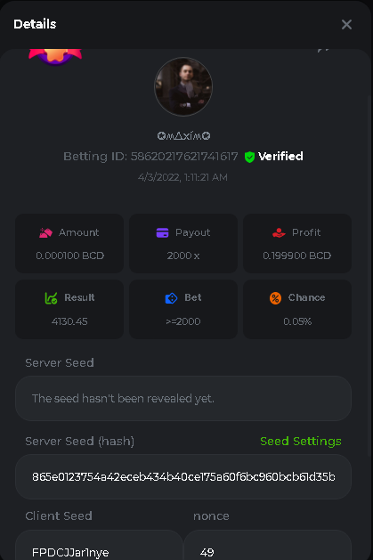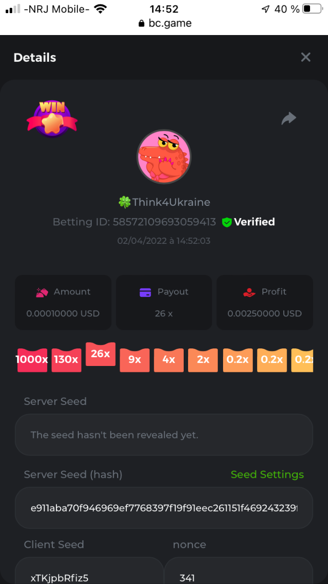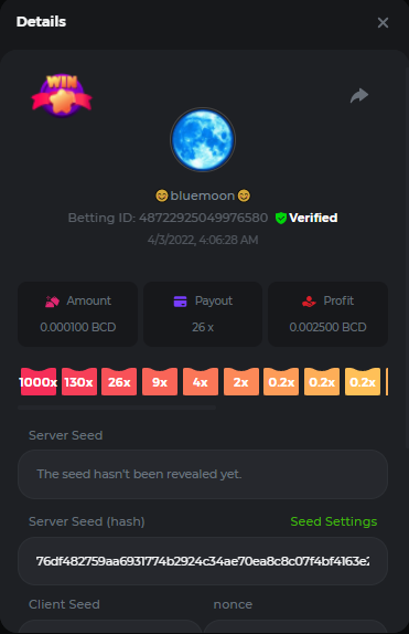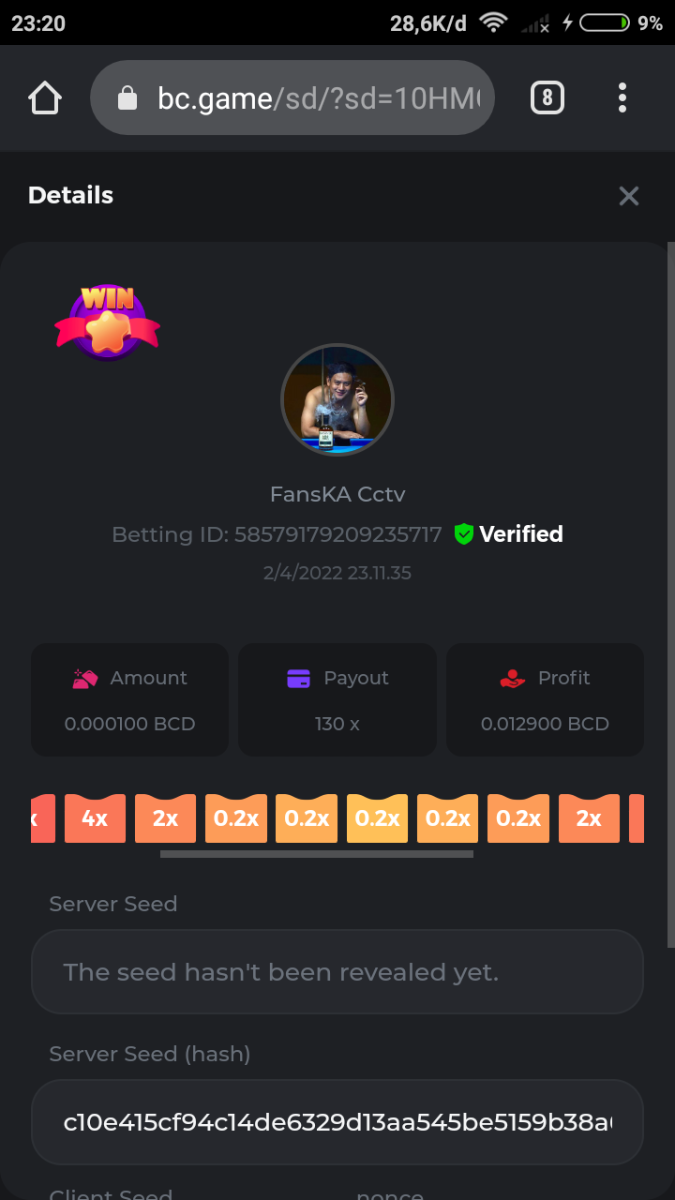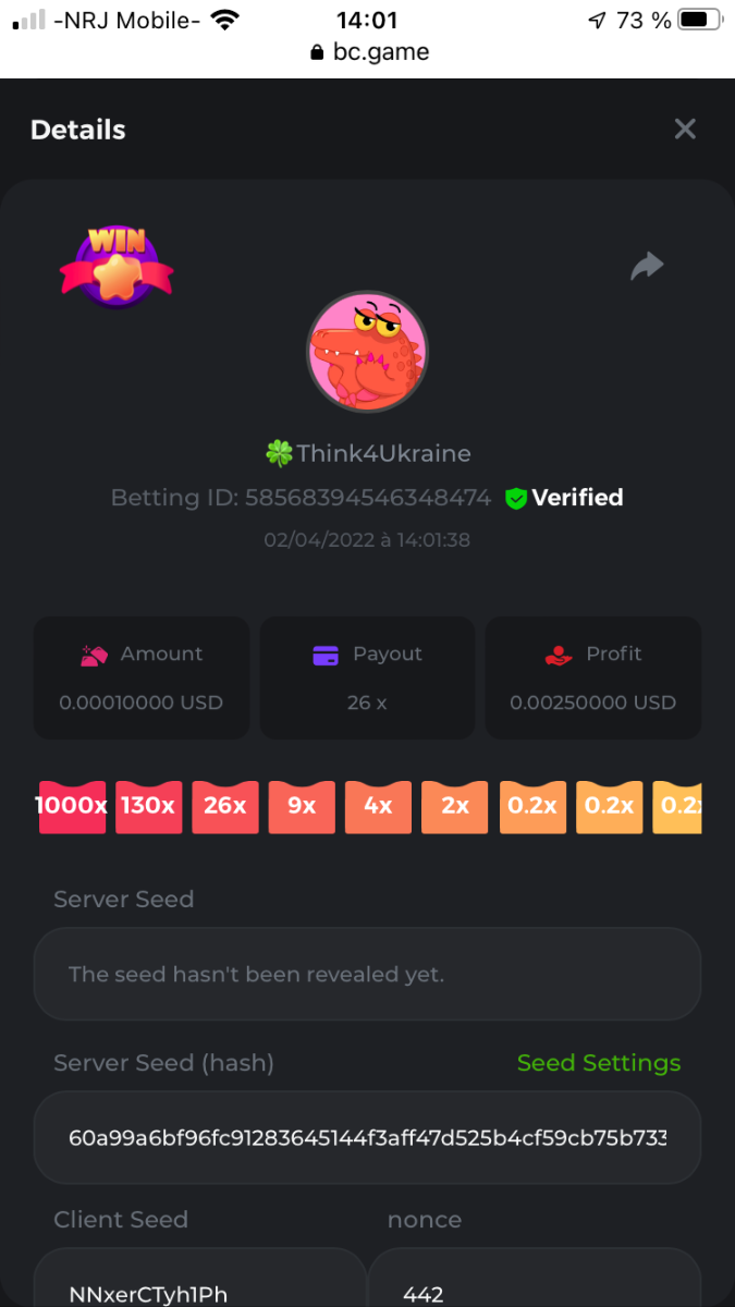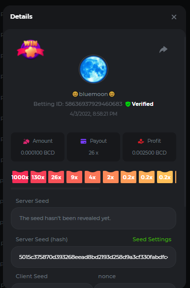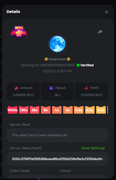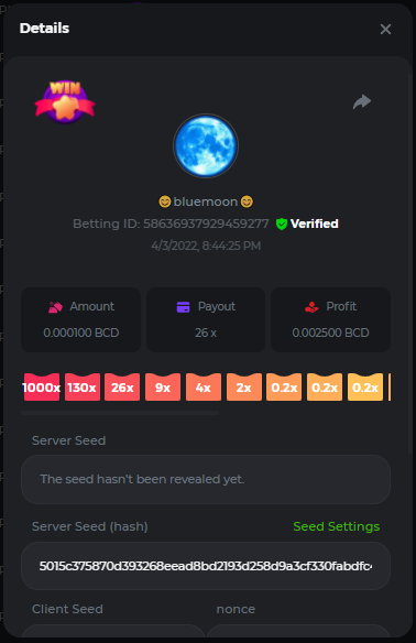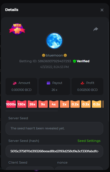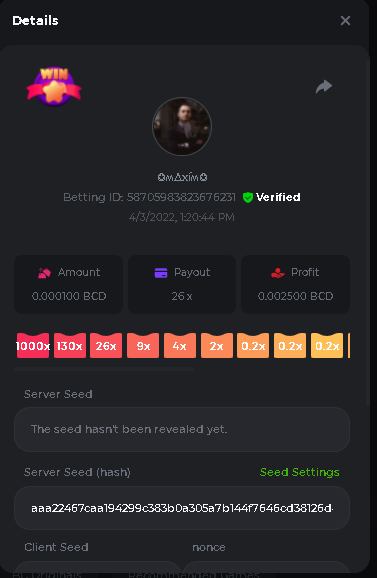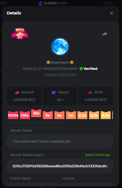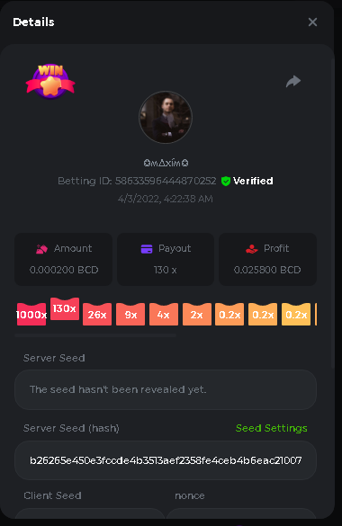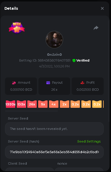 Event Team BCGame_Maxim Posted April 2, 2022 Event Team Share Posted April 2, 2022 BC Profile : https://bc.game/user/profile/2008867 [My Name not updating on forum ] Limbo 2000x = 2 Point Plinko 26x = 121 x 1 = 121 Points Plinko 130x = 18 x 7 = 126 Points Plinko 1000x = 3 x 10 = 30 Points Total = 279 Points https://bc.game/sd/?sd=10HMV099U89R83 https://bc.game/sd/?sd=10HMVUJVQL60PF https://bc.game/sd/?sd=10HMWDJIN8DN9V https://bc.game/sd/?sd=10HMWLM0ENQOLV https://bc.game/sd/?sd=10HMWT2C63O3DF https://bc.game/sd/?sd=10HMX16KP3YYOJ https://bc.game/sd/?sd=10HMX9ZY2GITQR https://bc.game/sd/?sd=10HMXJ4QRR6OSZ https://bc.game/sd/?sd=10HMXVP1UA7XG3 https://bc.game/sd/?sd=10HMY5S8JBCPAR 130x Plinko https://bc.game/sd/?sd=10HMYCLEZN2P03 https://bc.game/sd/?sd=10HMZ48EXJR28J https://bc.game/sd/?sd=10HMZDJEIRCM4Z https://bc.game/sd/?sd=10HMZM7EAJMZ9V https://bc.game/sd/?sd=10HMZT3AQ4ZNKJ Plinko- 130x https://bc.game/sd/?sd=10HMZYAENOWS9F https://bc.game/sd/?sd=10HN02HHARQN83 https://bc.game/sd/?sd=10HN0BJN21AQS3 https://bc.game/sd/?sd=10HN0IBWWC9VDF https://bc.game/sd/?sd=10HN0Z0OHFFAQB https://bc.game/sd/?sd=10HN1C9UFBWJKJ https://bc.game/sd/?sd=10HN1FU9X2SH03 https://bc.game/sd/?sd=10HN1LH3YEB8R7 https://bc.game/sd/?sd=10HN1TPUHD6YOJ https://bc.game/sd/?sd=10HN1Y55WK6TCJ https://bc.game/sd/?sd=10HN292WYUHWYB Plinko-130x https://bc.game/sd/?sd=10HN2ENVY81WK3 https://bc.game/sd/?sd=10HN2SV3QUPIC3 https://bc.game/sd/?sd=10HN2WTCI8K2KZ https://bc.game/sd/?sd=10HN30904JDES3 https://bc.game/sd/?sd=10HN3AZYMI0E8J https://bc.game/sd/?sd=10HN4K9RMD4BV7 https://bc.game/sd/?sd=10HN57R2MUSMC3 https://bc.game/sd/?sd=10HN5WIE1XR503 https://bc.game/sd/?sd=10HN6KCSR8N95F https://bc.game/sd/?sd=10HN6S682AXLOZ Plinko-130x https://bc.game/sd/?sd=10HN7HZ3QIRP5F https://bc.game/sd/?sd=10HN7L7LU1BV2R https://bc.game/sd/?sd=10HN89KTDX3HUB https://bc.game/sd/?sd=10HN994FWQV3TF Plinko-130x https://bc.game/sd/?sd=10HNA40IUSMDQR https://bc.game/sd/?sd=10HNAA4JGDF5LF https://bc.game/sd/?sd=10HNAD0BG2U9SJ https://bc.game/sd/?sd=10HNAG3EZC55HV https://bc.game/sd/?sd=10HNAKHSXAN9QR https://bc.game/sd/?sd=10HNARO51J23O3 Plinko-130x https://bc.game/sd/?sd=10HO2VCGZ75KIB https://bc.game/sd/?sd=10HO31ND4L9V6B https://bc.game/sd/?sd=10HO343E8S7O5V Plinko-130x https://bc.game/sd/?sd=10HO3O2SNVO2KZ https://bc.game/sd/?sd=10HO3SWFIILK43 https://bc.game/sd/?sd=10HO43ZMHL81LF https://bc.game/sd/?sd=10HO46YX9L0G0J https://bc.game/sd/?sd=10HO4ARQ0PUQDV https://bc.game/sd/?sd=10HO4F5PPD9NV7 https://bc.game/sd/?sd=10HO4HR1HCBTOZ https://bc.game/sd/?sd=10HO4K89322T5F Plinko-130x https://bc.game/sd/?sd=10HO4OKBHZV4ER https://bc.game/sd/?sd=10HO59IGVB7Y1F https://bc.game/sd/?sd=10HO5DJJWBPGCZ https://bc.game/sd/?sd=10HO5GWWINUNMB https://bc.game/sd/?sd=10HO5U3ZSMKETV https://bc.game/sd/?sd=10HO6110G8KRV7 https://bc.game/sd/?sd=10HO678DKO0POZ https://bc.game/sd/?sd=10HO6FWW88UQKZ https://bc.game/sd/?sd=10HO6LXNMMPZIR https://bc.game/sd/?sd=10HO6NKJ5D3TOZ https://bc.game/sd/?sd=10HO6VT6XHL7O3 https://bc.game/sd/?sd=10HO71JDL4M2OJ Plinko-130x https://bc.game/sd/?sd=10HO75TGBNBH8Z https://bc.game/sd/?sd=10HO79NAP5VJMB https://bc.game/sd/?sd=10HO7R9R882W43 https://bc.game/sd/?sd=10HO7UII8JLC0J Plinko-1000x https://bc.game/sd/?sd=10HO84GYI4KYDV Plinko-1000x https://bc.game/sd/?sd=10HO8AU8AUG74J https://bc.game/sd/?sd=10HO8O8SKBHNV7 Plinko-130x https://bc.game/sd/?sd=10HO94ZEKSY49F https://bc.game/sd/?sd=10HO9Z2X4F455F https://bc.game/sd/?sd=10HOA28RUAP3WZ https://bc.game/sd/?sd=10HOA4Z4450G0J https://bc.game/sd/?sd=10HOA8ARZPO8PF https://bc.game/sd/?sd=10HOAAJSJQML1V https://bc.game/sd/?sd=10HOAE95XPHFKJ https://bc.game/sd/?sd=10HOAKACLTL3PV Plinko-130x https://bc.game/sd/?sd=10HOAQJDNJBKER Plinko-130x https://bc.game/sd/?sd=10HOAYXR7YQYHF https://bc.game/sd/?sd=10HOB7V4IYWQVN https://bc.game/sd/?sd=10HOBL2RW2WB2R https://bc.game/sd/?sd=10HOBUT5Z45LAR https://bc.game/sd/?sd=10HOBW3HLRDGCZ https://bc.game/sd/?sd=10HOF4QGQJM4GJ https://bc.game/sd/?sd=10HOGCG97AT0K3 Plinko-130x https://bc.game/sd/?sd=10HOGG6JHP01SJ https://bc.game/sd/?sd=10HOH1JN7WJTW3 https://bc.game/sd/?sd=10HOH7ILXBFCB7 https://bc.game/sd/?sd=10HOHHEBQASCUR https://bc.game/sd/?sd=10HOIB0E80URKJ https://bc.game/sd/?sd=10HOIFGBZV7B4J Plinko-130x https://bc.game/sd/?sd=10HOIMGJTU8PW3 https://bc.game/sd/?sd=10HONW6VSJC3DF https://bc.game/sd/?sd=10HOO5VQ3F9FKJ https://bc.game/sd/?sd=10HOOLCJI97THV https://bc.game/sd/?sd=10HOOOK1A7SHLF Plinko-130x https://bc.game/sd/?sd=10HOOU172Q9EDV https://bc.game/sd/?sd=10HOOX6EV55YC3 https://bc.game/sd/?sd=10HOP3ZXXTSX03 https://bc.game/sd/?sd=10HOPACAN64KCZ https://bc.game/sd/?sd=10HOPDGU3UFS43 https://bc.game/sd/?sd=10HOPJO4AHNZ0Z https://bc.game/sd/?sd=10HOPSWNJA239V https://bc.game/sd/?sd=10HOPWEDOAAJ9V https://bc.game/sd/?sd=10HOQ3UQDHY783 Plinko-130x https://bc.game/sd/?sd=10HOQNTV97YXW3 https://bc.game/sd/?sd=10HORN4SWQ0LCJ https://bc.game/sd/?sd=10HORTQ3E7XY4Z https://bc.game/sd/?sd=10HOSK9W0XANF7 https://bc.game/sd/?sd=10HOSNUQVV1F6B Plinko-1000x https://bc.game/sd/?sd=10HOSX2PK5F28J Plinko-130x https://bc.game/sd/?sd=10HOULHX9FGU1F https://bc.game/sd/?sd=10HOUW66W1ANF7 https://bc.game/sd/?sd=10HOV6VNFRBXN7 https://bc.game/sd/?sd=10HOVGGNJCZQ4Z https://bc.game/sd/?sd=10HOW4N7L21G5V https://bc.game/sd/?sd=10HOWOMVVND637 https://bc.game/sd/?sd=10HOWTV42YBJ0Z https://bc.game/sd/?sd=10HOWZKCAO9ES3 https://bc.game/sd/?sd=10HOZ7DLY43M6R https://bc.game/sd/?sd=10HOZCNJ1DYPEB https://bc.game/sd/?sd=10HOZIN5QEOS9F https://bc.game/sd/?sd=10HOZRDT7YLJWZ https://bc.game/sd/?sd=10HOZWXR98PZ4J https://bc.game/sd/?sd=10HP091AQUA7MB https://bc.game/sd/?sd=10HP0BQVNOTYXF https://bc.game/sd/?sd=10HP16NTRPQL8Z https://bc.game/sd/?sd=10HP19CNZU4PAR Plinko-130x https://bc.game/sd/?sd=10HP1J6P5IAXOZ https://bc.game/sd/?sd=10HP2J75KHKR2R https://bc.game/sd/?sd=10HP2LZZQ9ECCZ https://bc.game/sd/?sd=10HP2QCAO5I6FN https://bc.game/sd/?sd=10HP4QM5RLN11V https://bc.game/sd/?sd=10HP534ZZRRH8Z https://bc.game/sd/?sd=10HP57HKDJZ6DV https://bc.game/sd/?sd=10HP5NR3OIC103 h