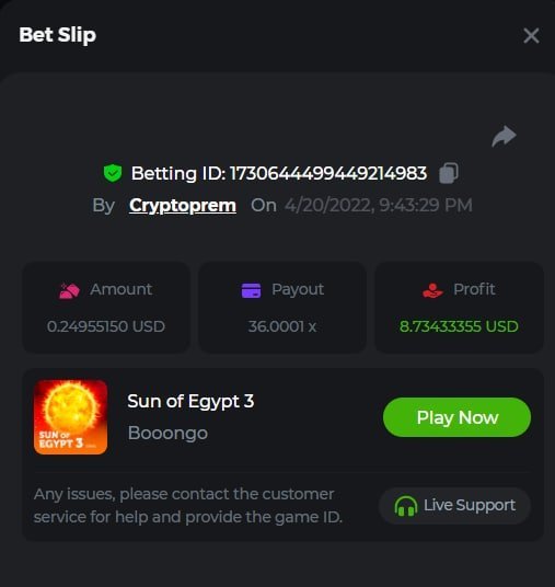 Jbuss Posted April 20, 2022 Share Posted April 20, 2022 8 hours ago, Jbuss said: Bet ID: #1730606666091967104Β https://bc.game/sd/?sd=10IUV2EH4YZ11V Link to comment Share on other sites More sharing options...